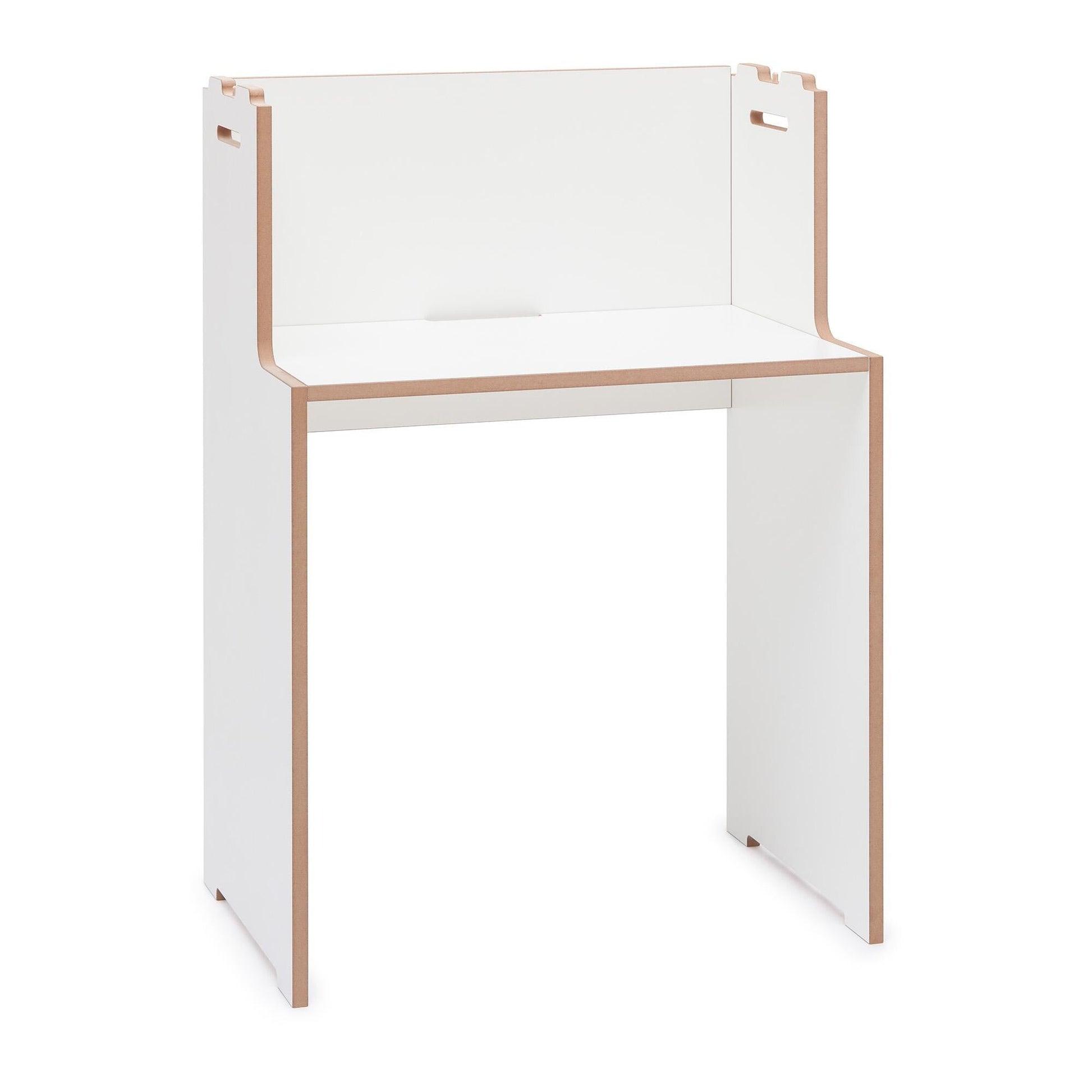 Die einzigartige Konzeption des Schreib Schreibtisches ermöglicht eine einfache Integration in das Regalsystem Hochstapler von Tojo. So entsteht ein perfekter Arbeitsplatz, auf dem Sie Ihre Büromaterialien, Ordner und Utensilien sicher unterbringen können. Die kompakte Form des Schreibtisches lässt ihn auch in einer kleinen Nische einpassen.
