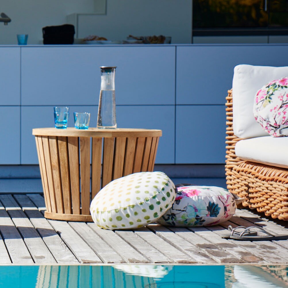 Mit seinen kompakten Abmessungen von 50 cm Durchmesser und 43 cm Höhe ist der Circus Beistelltisch ideal für jeden Raum, sei es im Innen- oder Außenbereich. Als Beistelltisch neben dem Pool oder als Gesprächsplatz im Gästezimmer bietet er sich als perfekte Ergänzung für jede Einrichtung an. Das Teak-Holz, das für den Tisch verwendet wird, verleiht ihm eine natürliche Eleganz, die in jedem Stil unterzubringen ist.