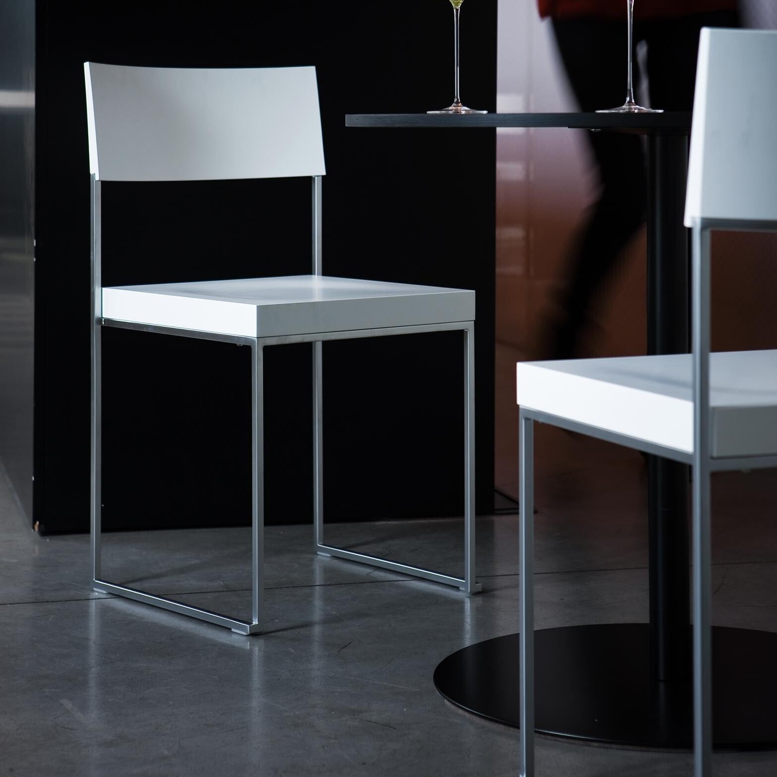 Der Cuba S56 Stuhl, entworfen von Enzo Berti für die Marke Lapalma, ist ein Meisterwerk der modernen Möbelkunst. Der Name "Cuba" bezieht sich auf das englische Wort "cube" für Würfel, was sich in den strengen geometrischen Linien des Stuhls widerspiegelt. Das Gestell präsentiert sich mit einer klaren Linienführung, während die leicht gebogene Rückenlehne einen interessanten Kontrast bildet und zum ausgezeichneten Sitzkomfort beiträgt.