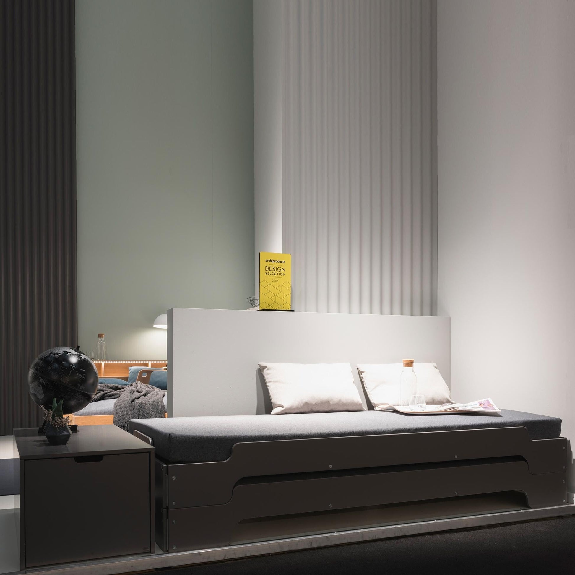 Die Stapelliege ist aus neunfach verleimtem Schichtholz gefertigt, das mit 15 mm Dicke sehr stabil und belastbar ist. Die Außenabmessungen betragen 93 cm Breite und 203 cm Länge. Als Zubehör kann man von Müller Small Living auch einen Lattenrost und eine Matratze mit 90 cm Breite und 200 cm Länge bestellen, um die Stapelliege perfekt auszustatten.
