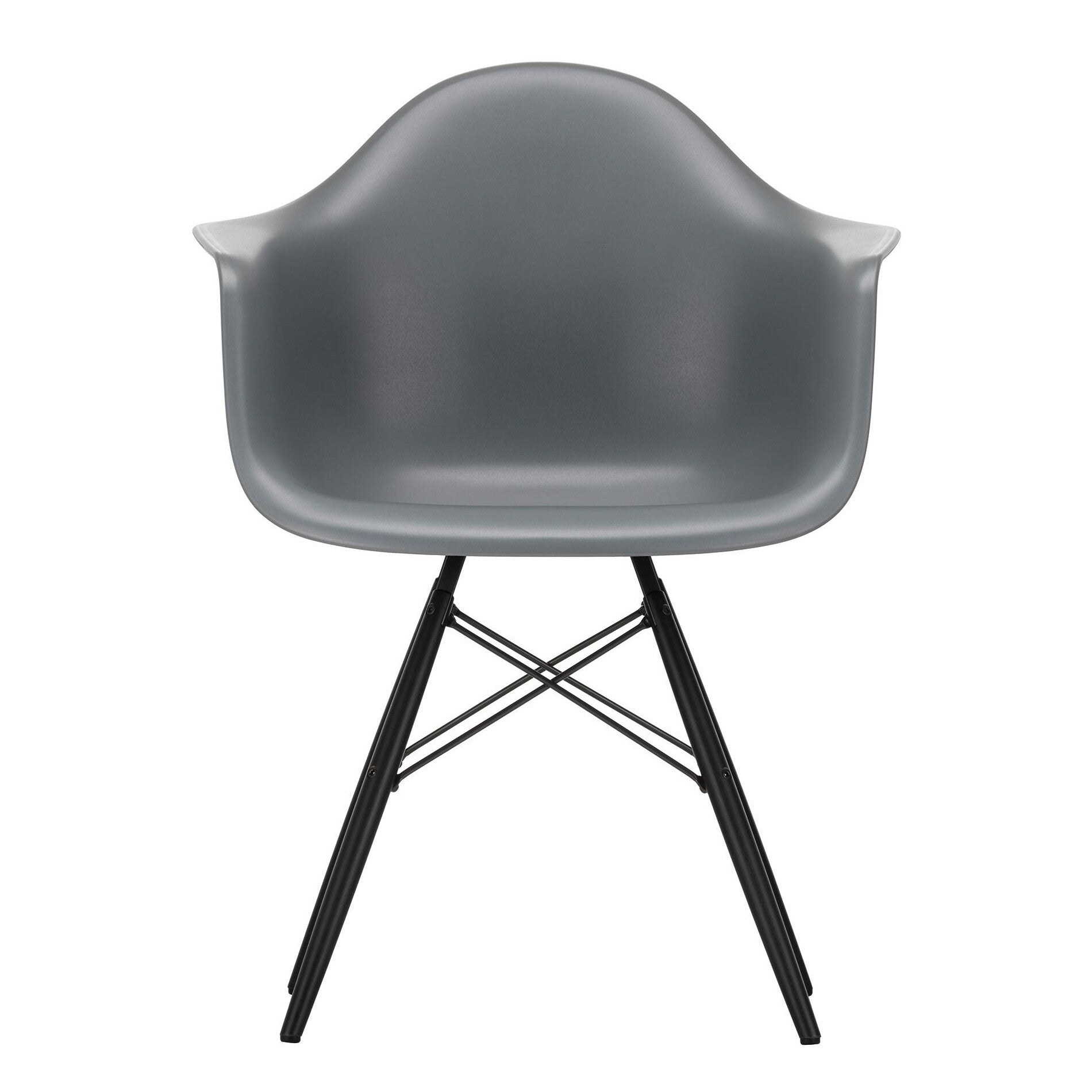 Ausführungen: Eames Plastic Armchair DAW RE Gestell Ahorn schwarz / granitgrau/Sitzschale recycelter Post Consumer Kunststoff/Gestell Ahorn schwarz/ Stahl schwarz/ Filzgleiter schwarz/BxHxT 62,5x83x60cm