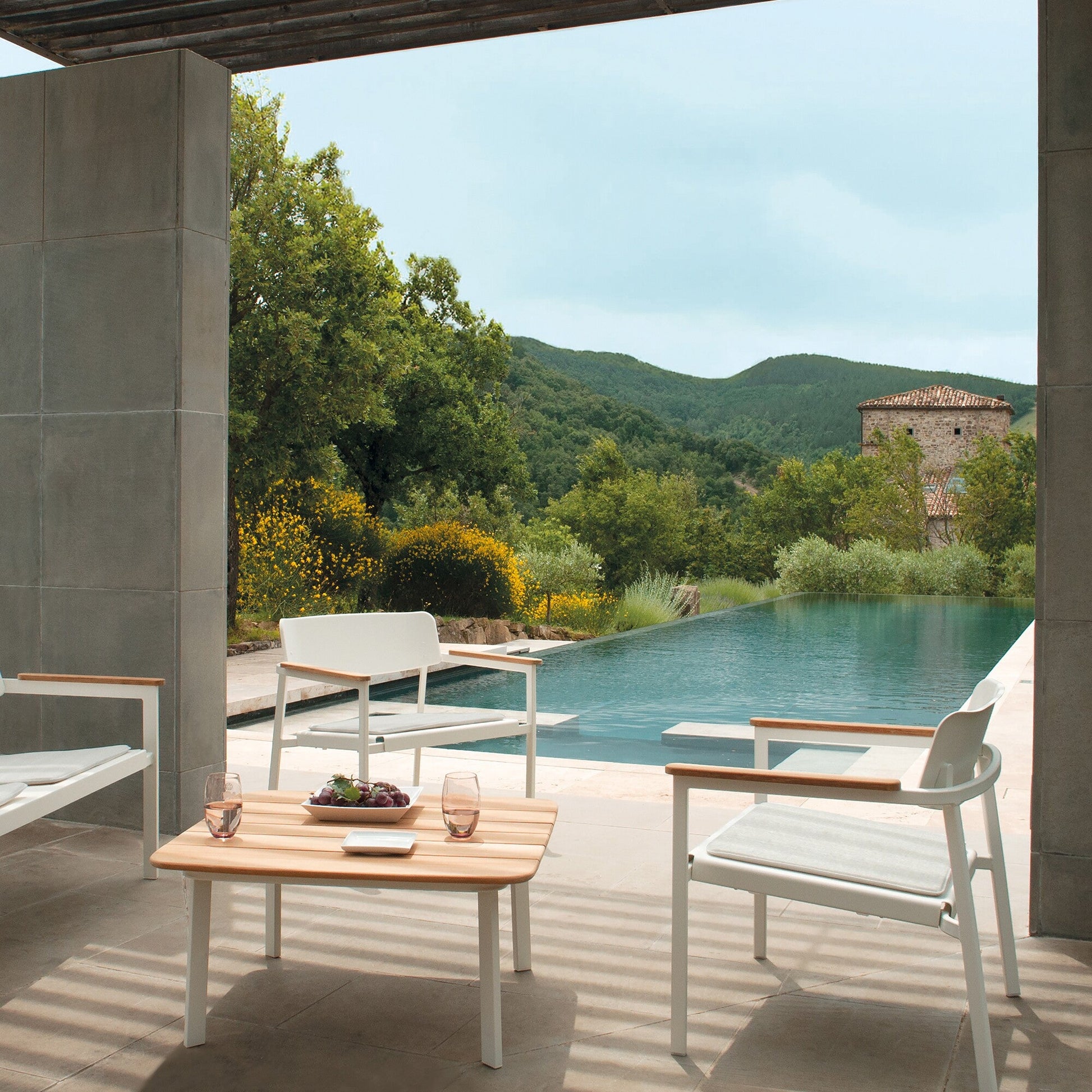 Der Shine Lounge Gartenarmlehnstuhl ist aus hochwertigem Teakholz gefertigt, das für seine natürliche Weichheit und seine Resistenz gegenüber Witterungseinflüssen bekannt ist. Die elegante Form und die feinen Details ergeben ein einzigartiges Design, das von jeder Seite beeindruckt.