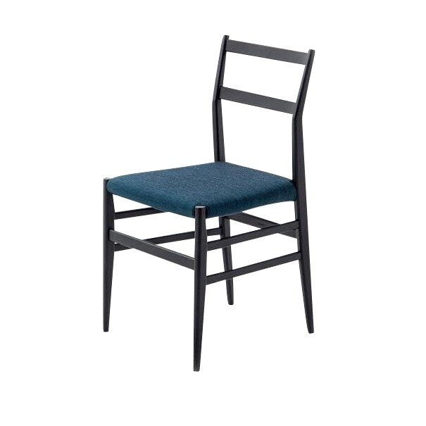 Ausführungen: 646 Leggera Stuhl mit Sitzpolster / blau/Stoff Uni.Melange 13O618/BxHxT 45x85x47cm/Gestell Esche schwarz