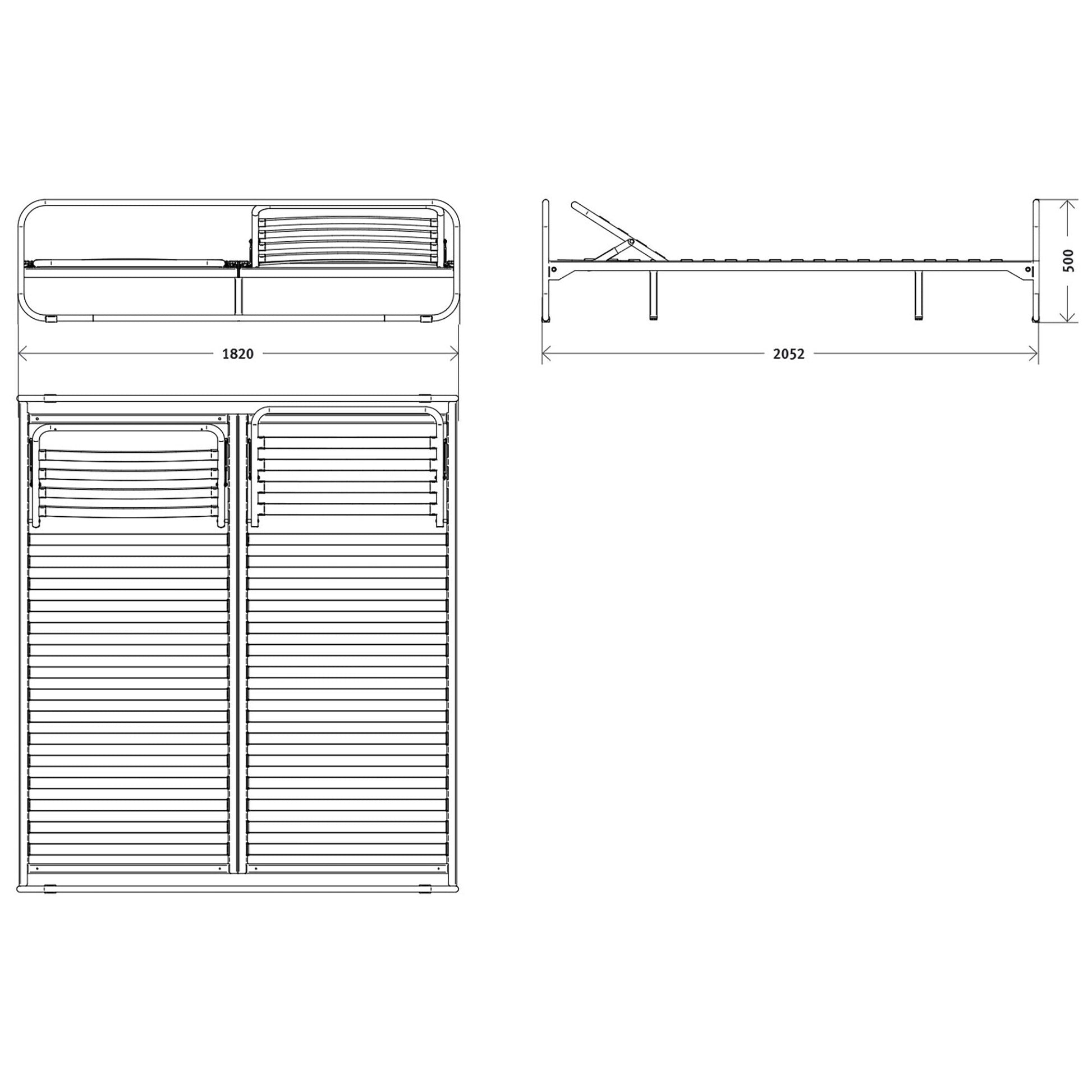 Ausführungen: Roth Modell 455 Doppelbett 182x205cm / chrom/glänzend/LxBxH 205x182x50cm/Rahmen tiefschwarz pulverbeschichtet/ohne Matratze