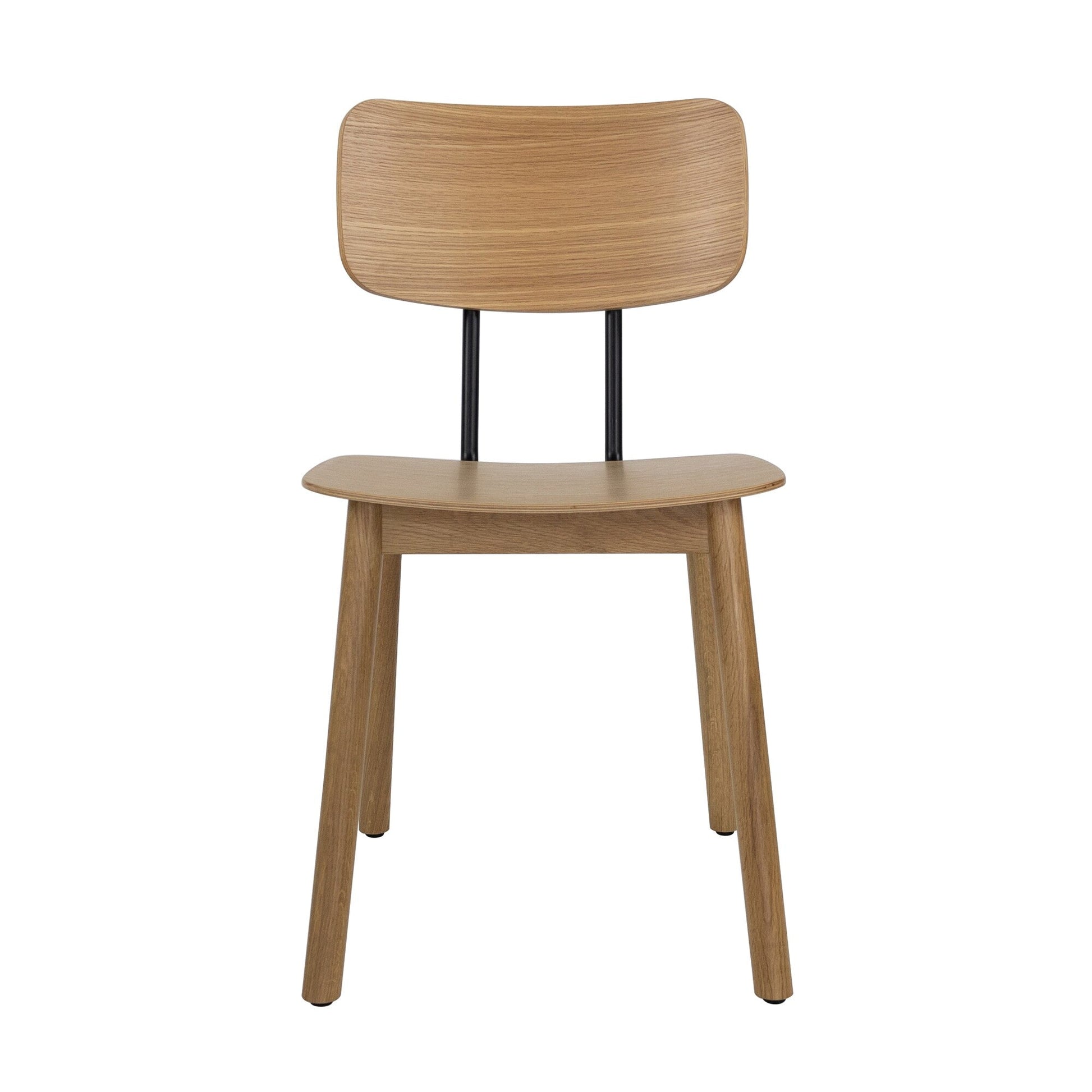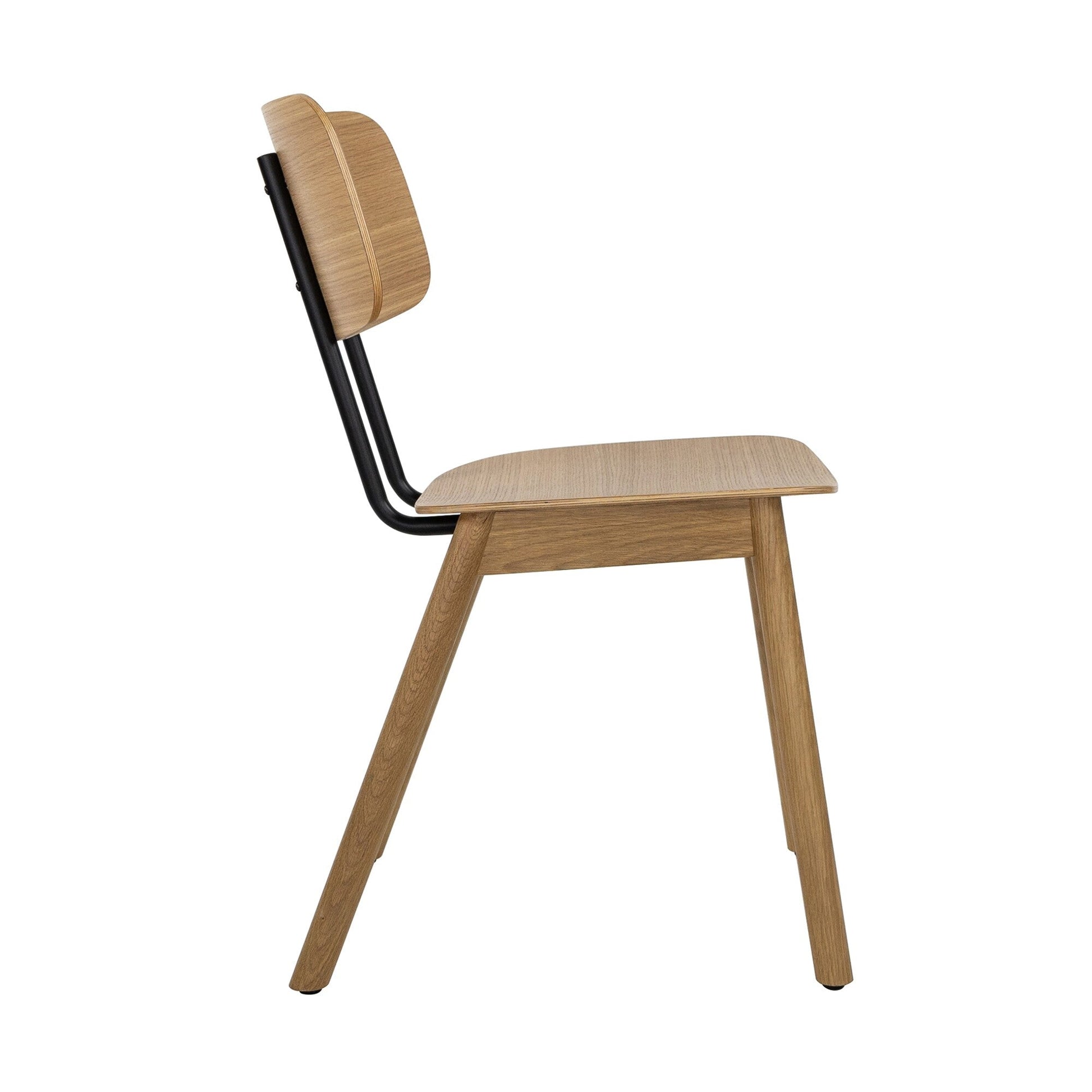 Der Basic Stuhl ist ideal für Wohn- und Esszimmer, Konferenzräume oder Restaurants, da er ein wohnliches Ambiente schafft. Dies liegt daran, dass er aus einem Naturmaterial hergestellt wird - robustem Eichenfurnier, das aus verantwortungsvoller Waldbewirtschaftung stammt und mit dem FSC-Siegel gekennzeichnet ist. Die vier runden und ausgestellten Beine garantieren dem Stuhl einen festen Stand, während die an der Unterseite montierten Gleiter heikle Böden schützen.