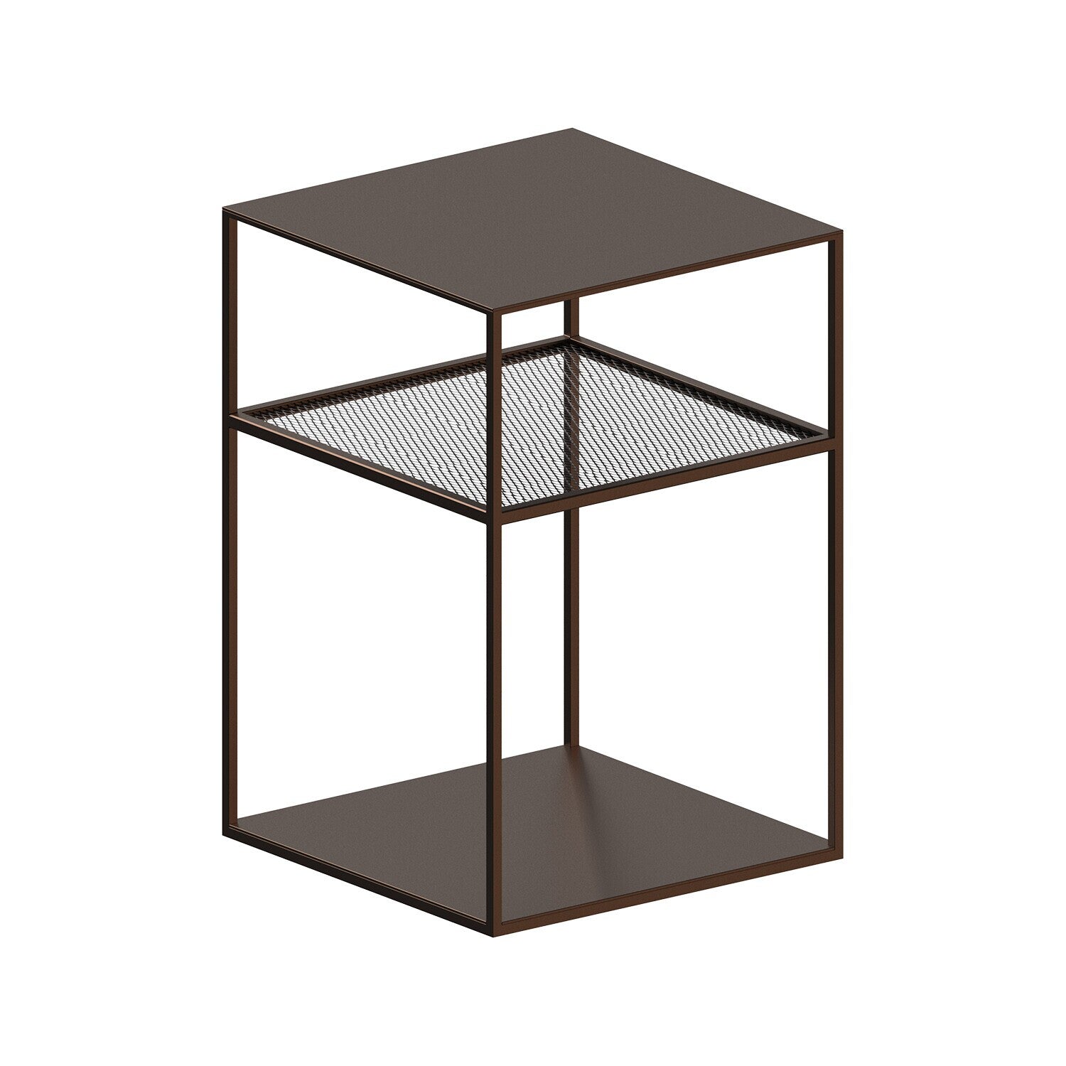 Ausführungen: Slim Irony Triplet Beistelltisch 31x31cm mit Metallgitter / braun/epoxidlackiert/LxBxH 31x31x46cm