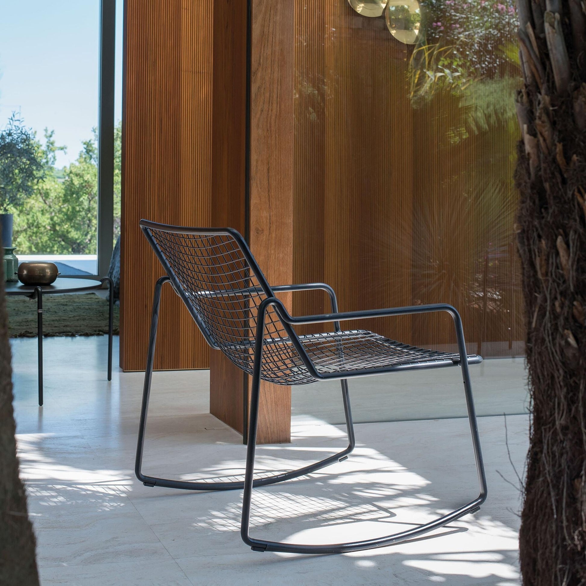 Mit seinen Maßen von 67 x 77 x 72 cm benötigt der Rio R50 Lounge Schaukelstuhl nicht viel Platz, um den Raum oder den Außenbereich zu verändern. Die Kombination aus robustem Stahl und nonchalanten Formen verleiht ihm eine urban anmutende Optik und zugleich eine moderne Eleganz. Der widerstandsfähige Stahl garantiert Resistenz gegenüber jeglichen Wettereinflüssen und Stabilität auch bei höherer Belastung. Die spezielle Verarbeitung des Werkstoffs reduziert die Rostbildung und macht den Rio R50 Lounge Schaukelstuhl umso strapazierfähiger.