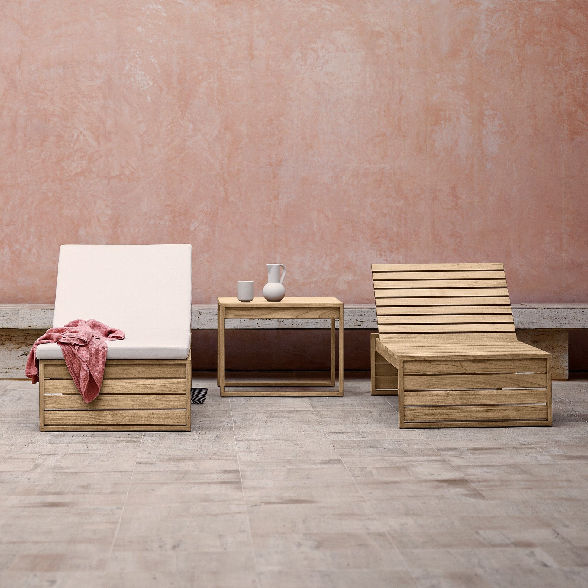 Die BK14 Sonnenliege zeichnet sich durch ihre einfache, geometrische Form aus, bestehend aus zwei Seitenteilen und der Liegefläche. Mit vier Stufen verstellbarer Kopfteil-Positionierung bietet sie perfekten Liegekomfort in jeder Position. Das hochwertige Teakholz, das Material der BK14, hat sich bereits seit Langem im Outdoorbereich bewährt und zeichnet sich durch Langlebigkeit und Wetterfestigkeit aus. Selbst bei Regen kann die BK14 Sonnenliege im Freien verweilen.
