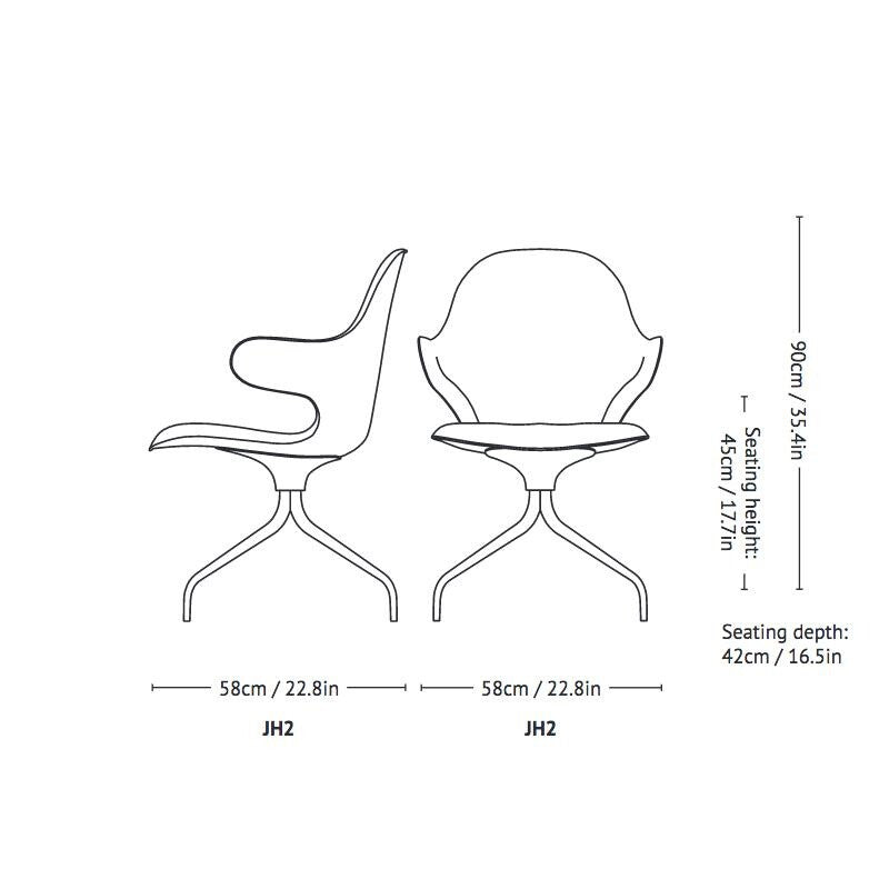 Der Catch JH2 Drehstuhl ist Jaime Hayons erster Beitrag zu einer Stuhlkollektion. Sein eleganter Stuhl zeichnet sich durch ein Gestell mit schwarzer Pulverbeschichtung und eine Polsterung aus PU&CMHR-Schaum aus, die für einen höchsten Komfort sorgt. Der beige Stoffbezug harmoniert perfekt mit dunklerem Einrichtungsstil und bietet eine angenehme Sitzhöhe von 45 cm. Die Armlehnen auf einer Höhe von 68 cm verlängern die Rückenlehne ergonomisch, sodass sie förmlich dazu einladen, Platz darauf zu nehmen. Der Catch JH2 Drehstuhl von &Tradition misst 58 x 90 x 58 cm und ist nicht nur ein Blickfang für Gäste und Besucher, sondern kann auch in allen Indoorbereichen eingesetzt werden - sei es im Büro, Schlaf- oder Wohnzimmer. Zur Pflege reicht ein weiches Tuch.