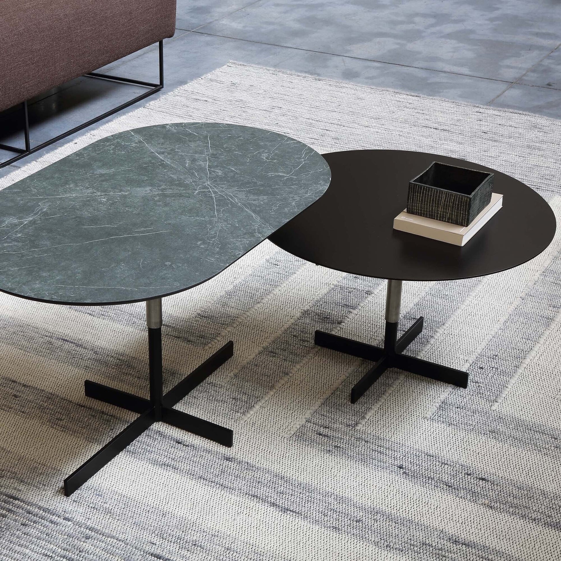 Der kreuzförmige Tischfuß aus robustem Stahl sorgt für einen tiefen Schwerpunkt des Tisches, der ihn zu einer stabilen und robusten Konstruktion macht. Der Bibò Beistelltisch H 37cm rund ist somit ideal für eine moderne Lounge, den Pausenbereich im Büro oder das Wohnzimmer daheim.