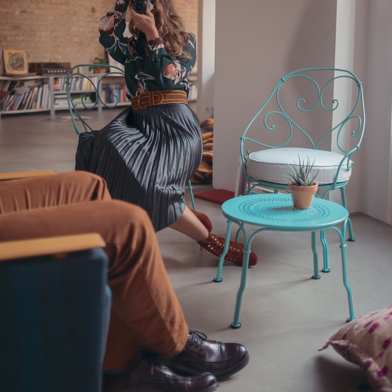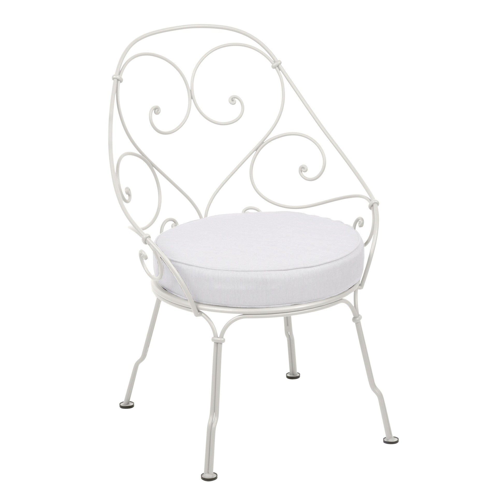 In den Produktionsräumen in Frankreich entstand der 1900 Cabriolet Gartenstuhl mit Sitzkissen, der auch gerne als "Thron aus Stahl" bezeichnet wird. Die eleganten Stahlringe werden von Hand gefertigt und geben dem Sitzmöbel eine umfassende Stabilität. Diese wird zudem durch die verwendeten Polyacrylfasern unterstützt. Das charmante Design des Stuhls passt hervorragend zur französischen Lebensart und ist in jedem Außenbereich ein echter Hingucker. Geschwungene Kurven verleihen dem Stuhl Sanftheit, während die spritzigen Farben für moderne Momente sorgen.