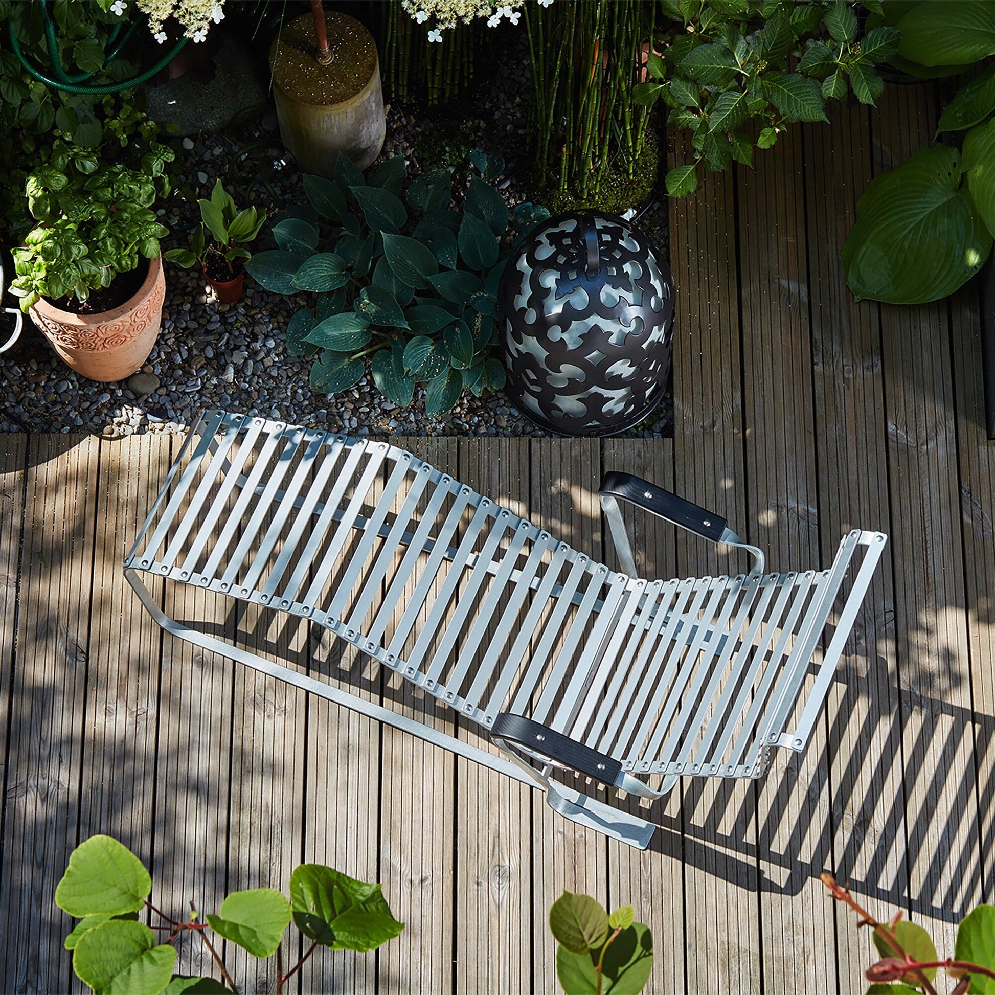In der Garten, auf der Terrasse oder auf dem Balkon, macht die Breuer Modell 1096 Sonnenliege eine elegante Figur. Auch neben dem Pool ist sie eine wunderbare Ergänzung. Die Liege unterstützt den Körper in der liegenden Position perfekt, während das Gestell aus feuerverzinktem Flachstahl Stabilität bietet. Zwei Kufen gewährleisten einen sicheren Stand, während die Querlatten aus farblos eloxiertem und geschliffenem Aluminium den Rahmen komplettieren.