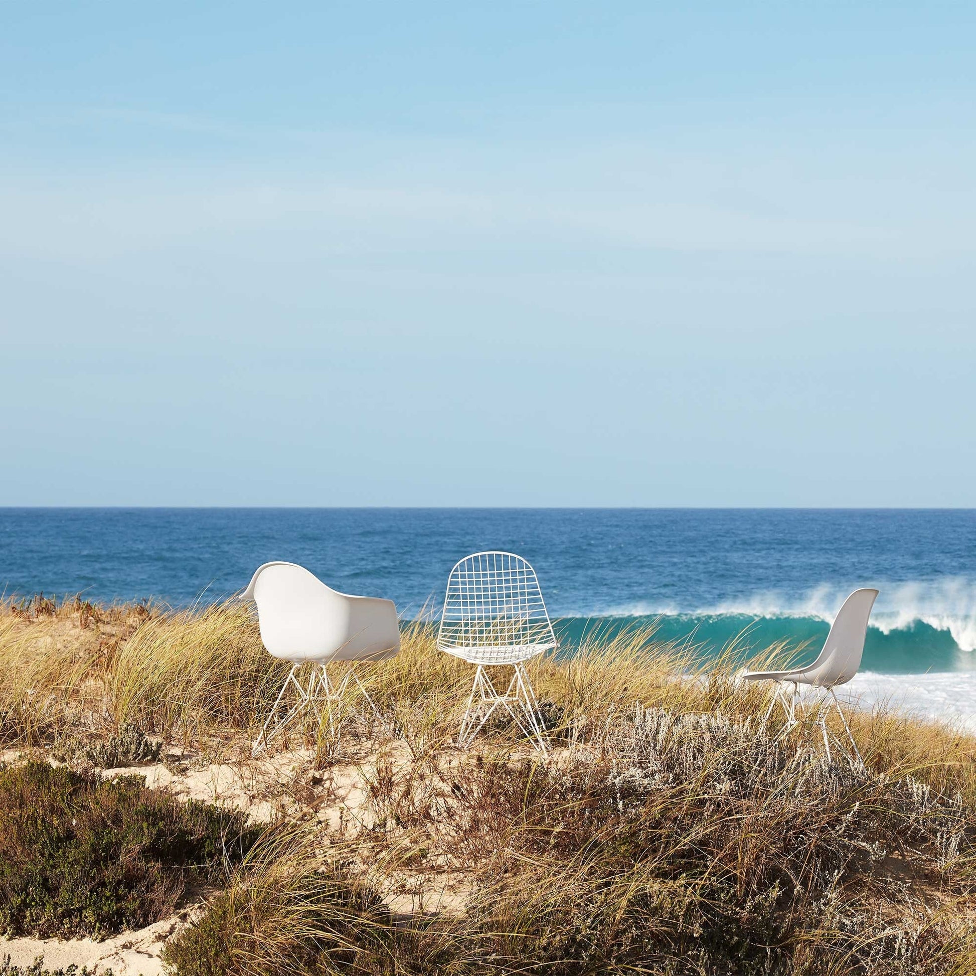 Die Sitzschale des Eames Plastic Armchair DAR Gestell weiß besteht aus Polypropylen und ist in verschiedenen Farben erhältlich, was sie zu einem echten Designklassiker macht. Die organische Form der Sitzschale steht in perfectem Kontrast zum weißen Gestell, das aus zusammengeschweißten Stahlrohren besteht. Durch dieses innovative Design strahlt der Stuhl eine Leichtigkeit und zeitlose Eleganz aus, die ihn zu einem perfekten Kombinationstalent macht, das in verschiedenen Einrichtungsstilen perfekt integriert werden kann.