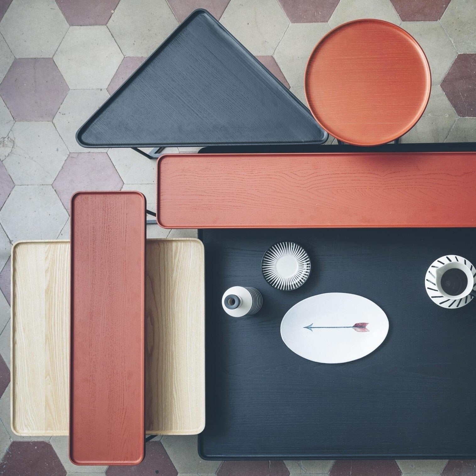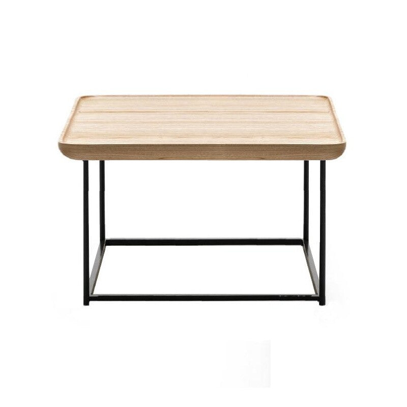 Der Torei Beistelltisch viereckig zeigt sich in seiner ganzen Pracht mit einer geometrischen Formensprache und einer extravaganten Materialkombination. Eine Tischplatte aus Eschenholz, die in Natur- oder Schwarzlack erhältlich ist, wird mit einem schwarzen Metallgestell kombiniert. Die attraktive Holzmaserung belebt die Tischplatte auf natürliche Weise. Gemäß dem Konzept des Design-Studios ist dieser Beistelltisch auch in unterschiedlichen Formen erhältlich, darunter eine dreieckige und rechteckige Variante.