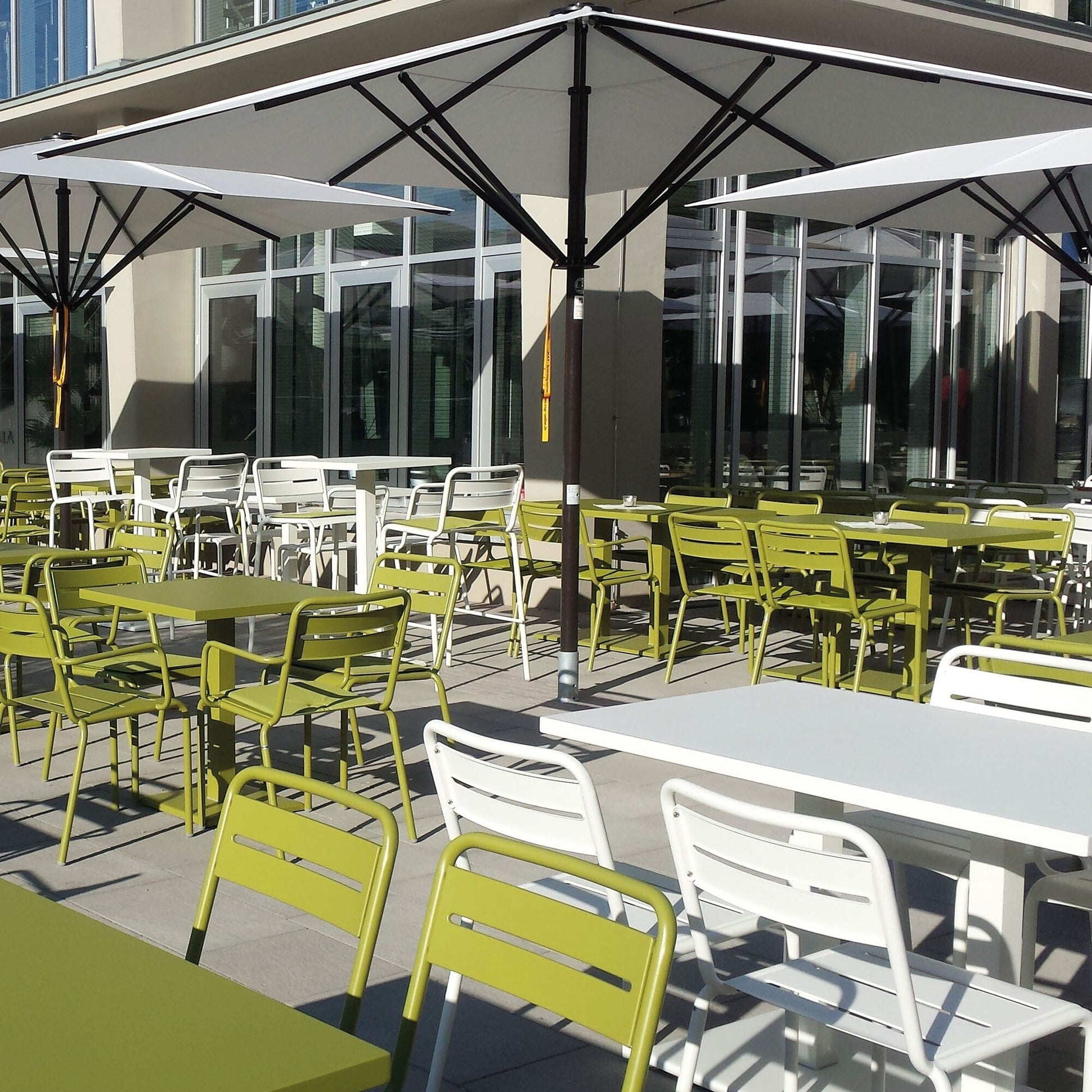 Mit seiner robusten pulverbeschichteten Stahlkonstruktion ist der Stuhl sicher und stabil, dank der leicht ausgestellten hinteren Stuhlbeine. Das Design der Marke Emu setzt höchsten Wert auf Funktionalität: die Schlitze auf der Sitzfläche und der Rückenlehne erleichtern das Abfließen von Regenwasser, während die sanft abgerundete vordere Kante der Sitzfläche einen perfekten Sitzkomfort bietet.