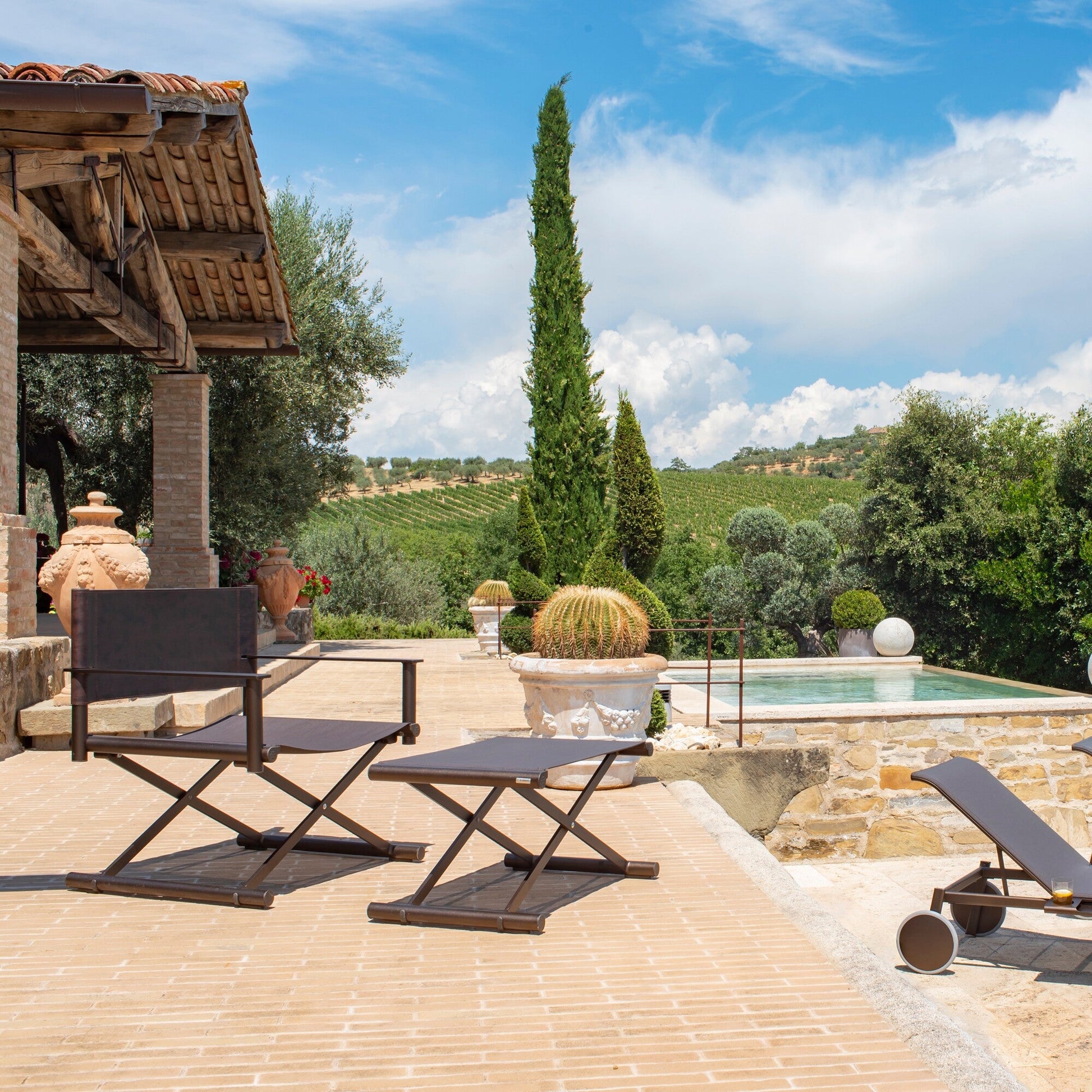 Der Terra Garten-Fußhocker klappbar ist ein perfektes Beispiel für exklusive Möbelkunst, die sich durch ihre Vielseitigkeit und Eleganz auszeichnet.