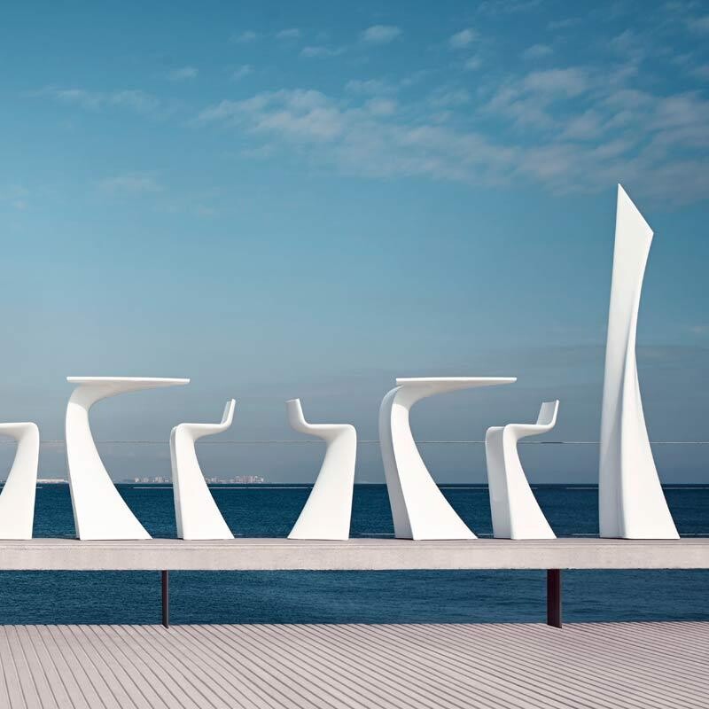 Ein Meisterwerk der modernen Möbelkunst: der Wing Bartisch von Vondom. Dieser einzigartige Tisch ist das Ergebnis einer exklusiven Zusammenarbeit zwischen dem spanischen Designstudio A-cero und dem renommierten Möbelhersteller Vondom.