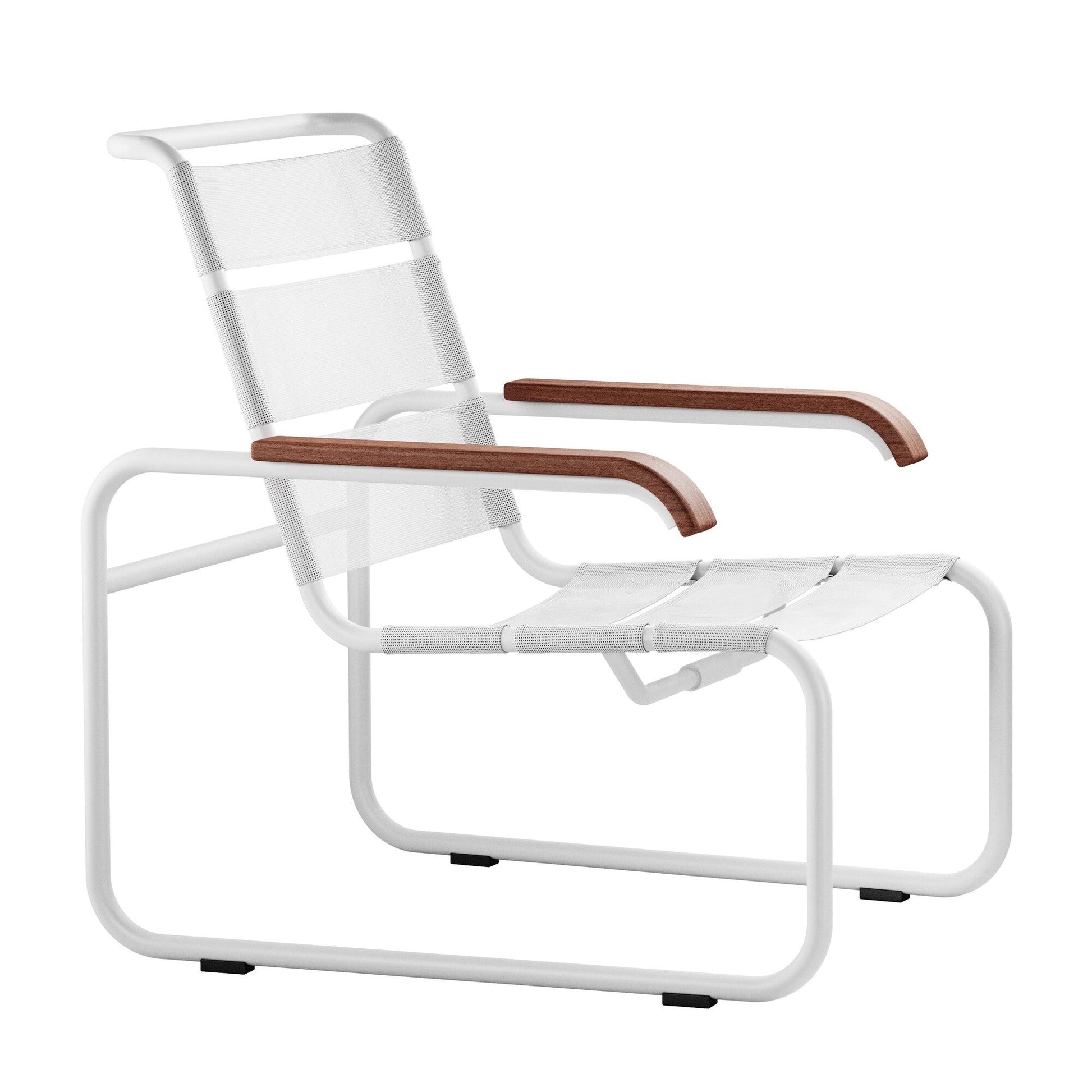 Der S 35 N All Seasons Gartensessel hat seit seiner Erfindung nichts von seinem Reiz verloren. Wie viele andere Entwürfe von Breuer entstand auch der S 35 während seiner Zeit als Designer für Bauhaus in Dessau. Die Neuauflage ist für jede Jahreszeit geeignet, dank der speziellen Beschichtung des Netzgewebes, das Rückenlehne und Sitzfläche bildet, und das Gestell aus pulverbeschichtetem Stahlrohr, das Regen und UV-Licht unempfindlich ist. Die Arme werden auf edlen Lehnen abgestützt, die aus hochwertigem Iroko-Holz gefertigt wurden.