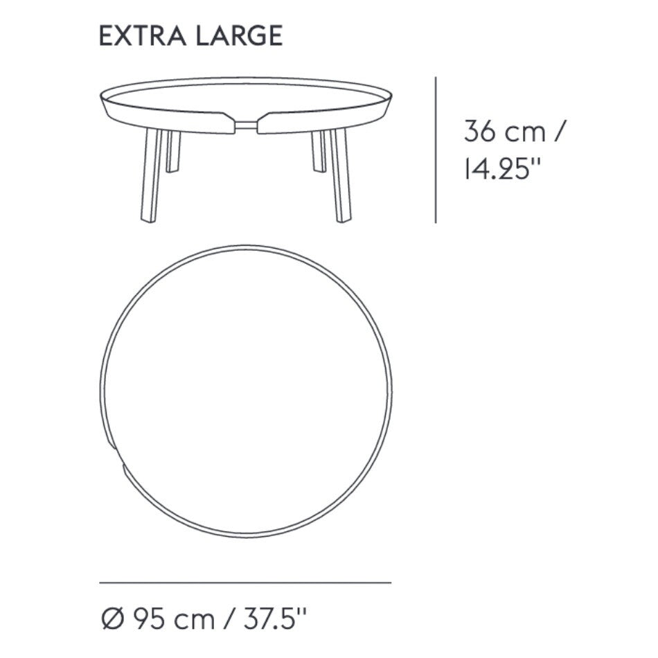 Der Around Beistelltisch XL von Muuto ist ein Meisterwerk der skandinavischen Möbelkunst. Entworfen von Thomas Bentzen, ist er Teil einer eleganten Serie von Tischen, die durch ihre Einfachheit und Funktionalität auffallen. Der Name Around bezieht sich auf die runde Form des Tisches, wobei der Name "Around" auf Deutsch "nächtlich" bedeutet und sich auf die vollständige Umfassung der Tischplatte bezieht.