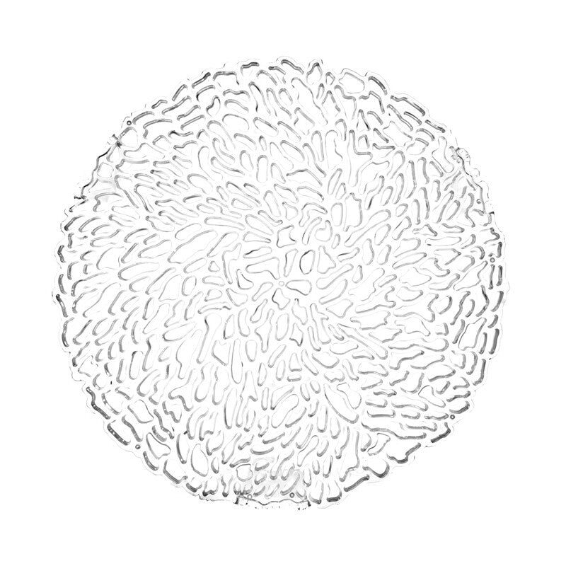 Auf den ersten Blick kaum sichtbar, begeistert der T-Table 28 Beistelltisch mit seiner kristallartigen Erscheinung, die eine leichte Eleganz versprüht. Er ist zur Gänze aus transparentem PMMA-Kunststoff gefertigt, was ihn zu einem witterungsbeständigen und robusten Stück macht. Die runde Platte ist eine durchlöcherte Scheibe, deren Aussparungen an gestickte Blumenmuster erinnern, während die Tischkante eine organische, geriffelte Form zeigt.