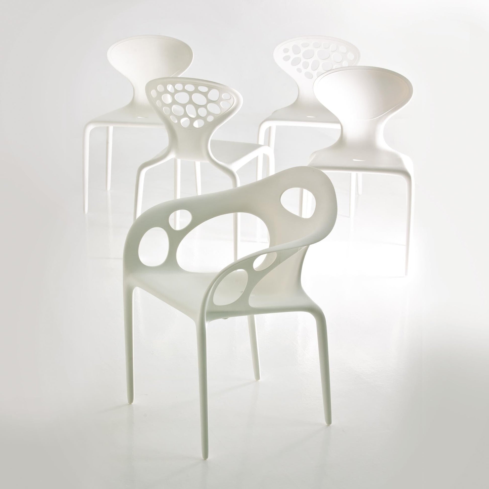 Der Supernatural Stuhl wird mit der innovativen Spritzgusstechnologie mit glasfaserverstärktem Polyamid hergestellt, was ein ausgezeichnetes Preis-Leistungs-Verhältnis garantiert. Der Stuhl ist stapelbar und dank seines unempfindlichen Materials auch draußen einsetzbar. Die fließende, organische Form des stabilen Stuhls macht ihn zum praktischen Begleiter modernen Wohnens und, besonders wenn er als Ensemble mehrerer Stühle genutzt wird, zum stylishen Eyecatcher.