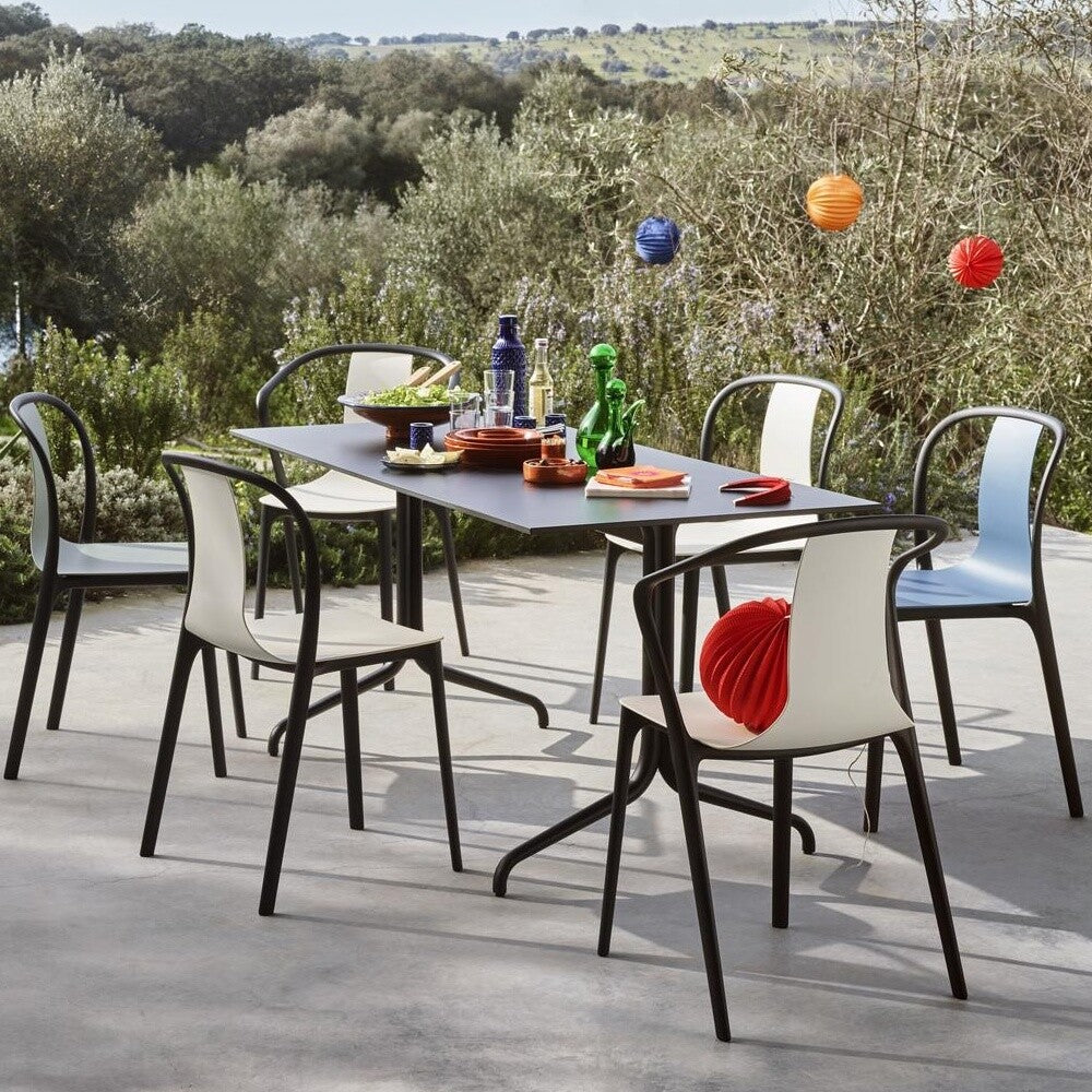 Der Belleville Gartenarmlehnstuhl Kunststoff ist ein Meisterwerk der modernen Möbelkunst. Entworfen von den renommierten Designern Ronan und Erwan Bouroullec für den renommierten Hersteller Vitra, präsentiert sich dieser Stuhl als perfekte Synthese von Form und Funktion. Die nach vorne gebogenen Armlehnen und die gebogene Rückenlehne erzeugen ein elegantes Erscheinungsbild, das sowohl in einem Garten als auch in einem Esszimmer oder einer Gaststätte perfekt zurecht kommt.
