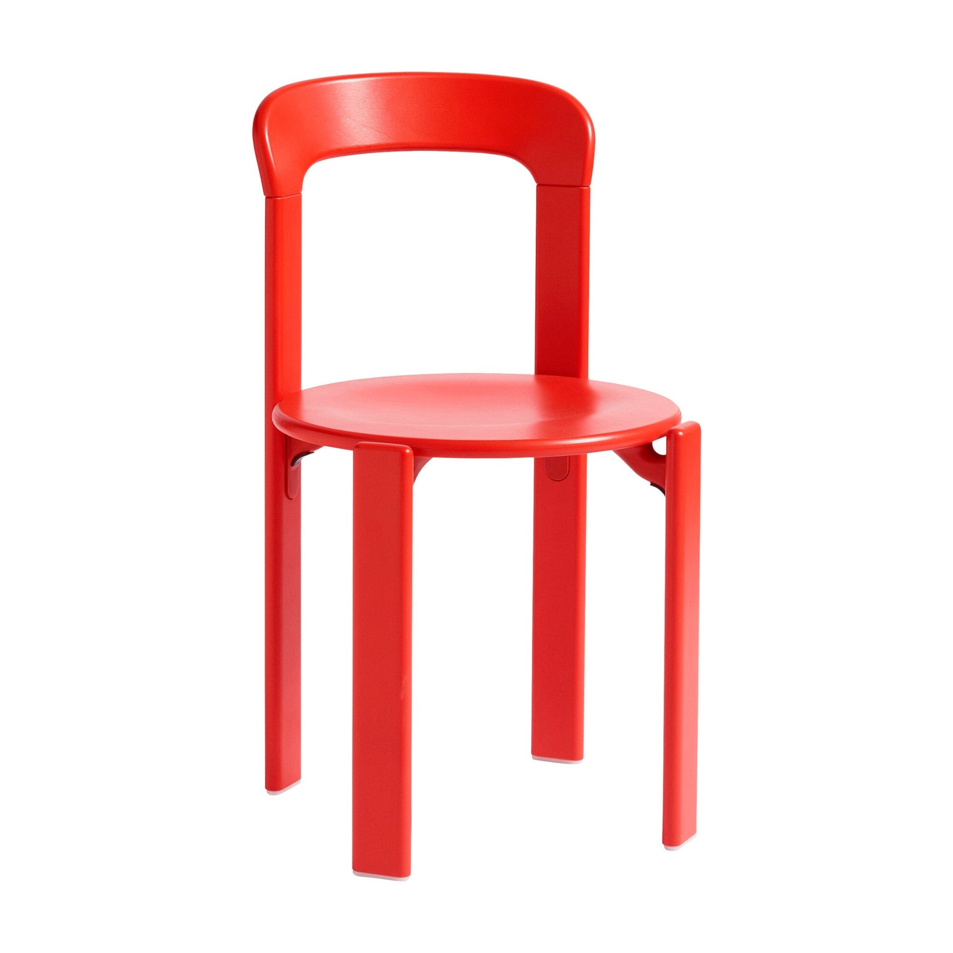 Ausführungen: Rey Stuhl / scharlachrot/lackiert wasserbasiert/Sitzfläche Buchenfurnier/Gestell Buche Massiv/mit Filzgleiter