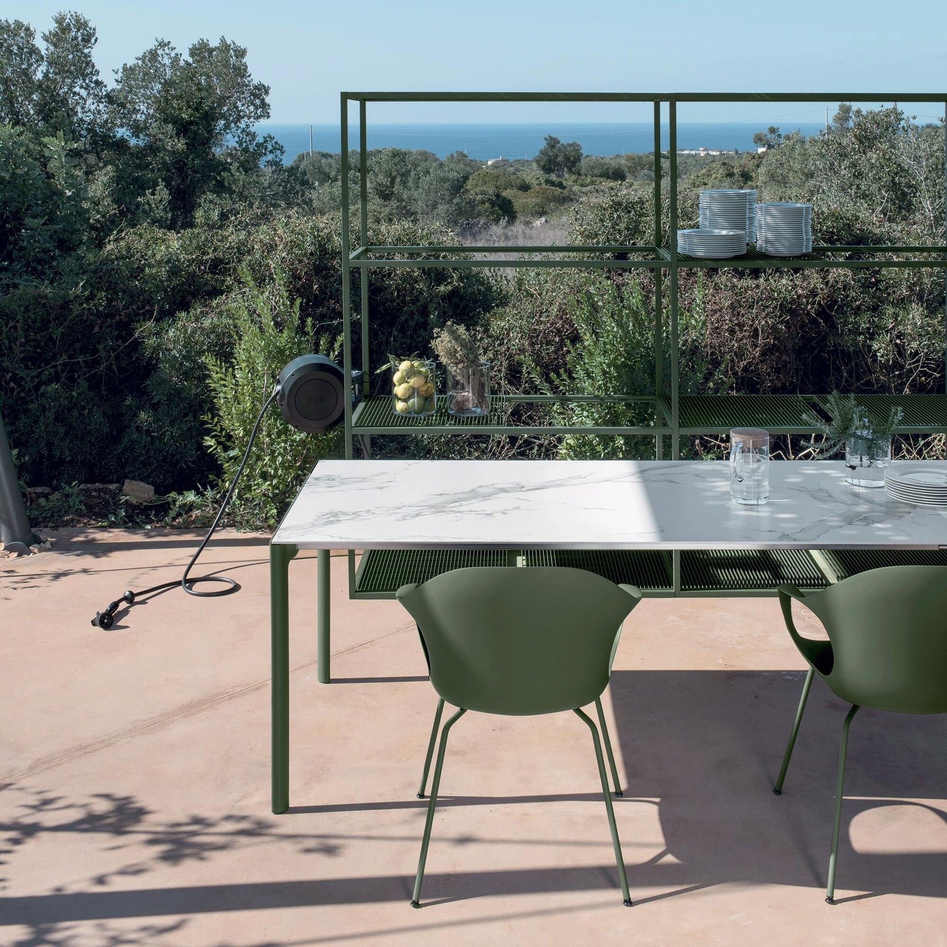 Der Elephant Armlehnstuhl besteht aus widerstandsfähigem Polyurethan, das ihn zu einem robusten und langlebigen Gartenstuhl macht, der sich ebenso in Außenbereichen, Gärten und Terrassen wie in Innenräumen aufhält. Die Lackierung wird epoxyd-pulverbeschichtet, um ihn gegen Witterungseinflüsse zu schützen.