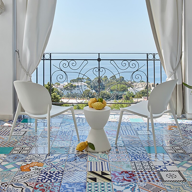 Der Be Bop Gartensessel von Kartell ist das Ergebnis einer kreativen Partnerschaft zwischen den Designern Ludovica und Roberto Palomba. Ihr Entwurf, der die Menschen im Mittelpunkt stellt, zeichnet sich durch eine einzigartige Mischung aus stilvollem Design und innovativer Technik aus. Die für das Möbelstück charakteristischen Kurven entstehen durch ein spezielles Spritzformverfahren, das eine einzigartige Oberfläche schafft. Die abgerundeten Linien vereinen sich mit der breiten, ergonomisch geformten Rückenlehne zu einem klassisch eleganten Gesamtbild. Der Be Bop Gartensessel bietet eine große Sitzfläche, die auch bei längerem Verweilen komfortabel ist und zu gemütlichen Stunden einlädt. Mit einer Sitzhöhe von nur 34cm ist der Stuhl eine perfekte Ergänzung zu einer Sitzgarnitur mit Couchtisch. Da das Material witterungsbeständig ist, kann der Gartensessel auch bei Regen im Freien bleiben. Der Be Bop Gartensessel ist aus Polypropylen gefertigt und bietet ein unaufdringliches und stilvolles Design, das perfekt zur Gestaltung eines exklusiven Außenraums passt.