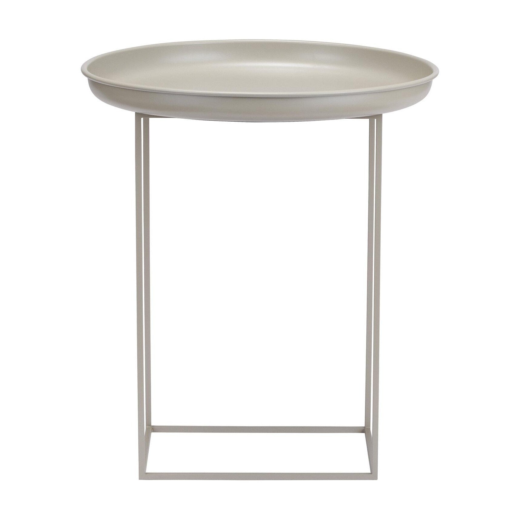Der Beistelltisch ist aus Metall gefertigt und besitzt eine runde Tischplatte mit einem Durchmesser von 45 cm, die auf einem rechteckigen, 52 cm hohen Gestell aus Vierkantrohr liegt. Die Tischplatte ist abnehmbar und kann einzeln als Tablett genutzt werden. Durch seine Vielseitigkeit und Praktikabilität wird der Duke Small Beistelltisch Ø 45cm zu einem unverzichtbaren Teil in jedem Raum.