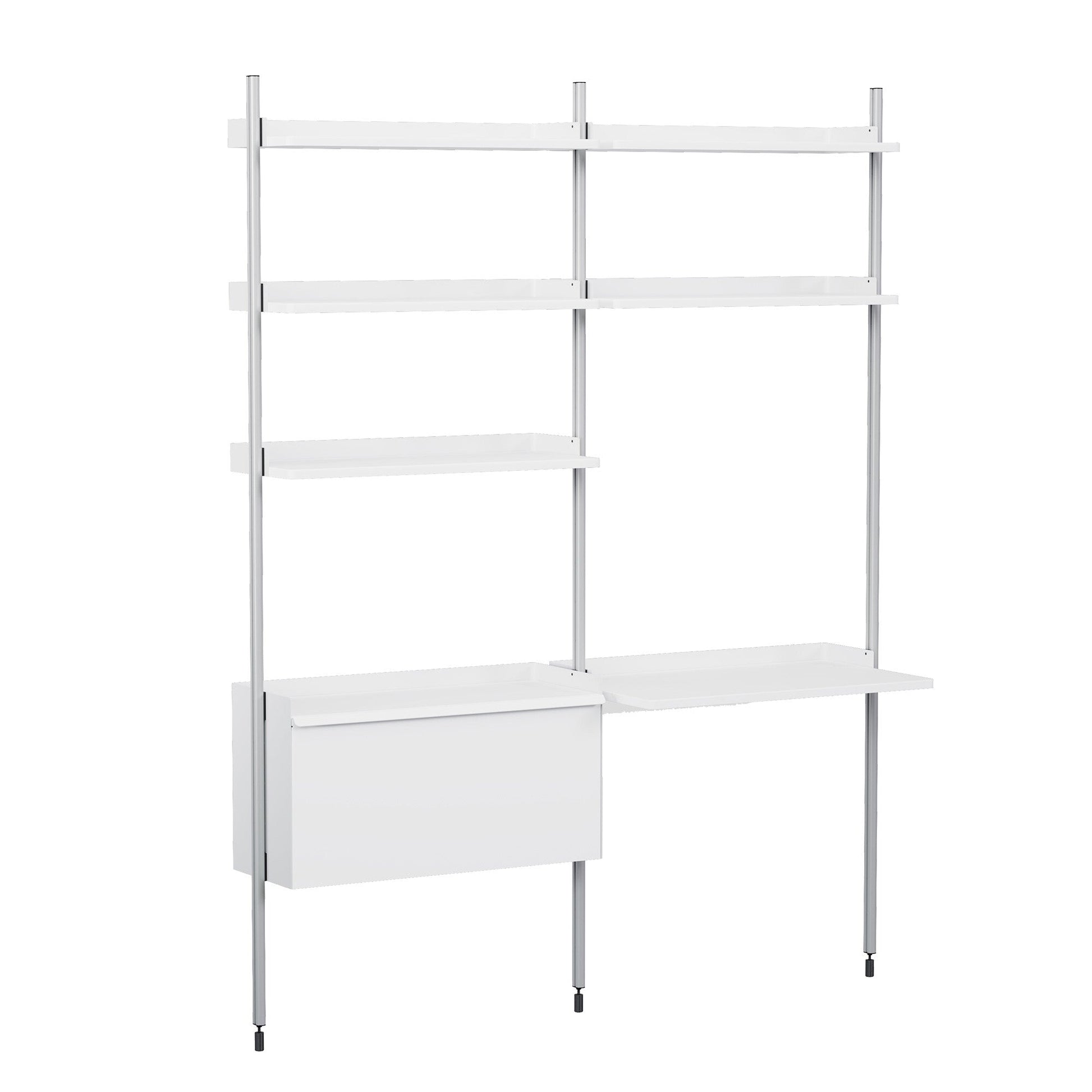 Ausführungen: Pier System 12 Regal mit Schreibtisch / weiß, aluminium/pulverbeschichtet, anodisiert/BxHxT 162x209x46cm/Tür mit Magnetverschluss
