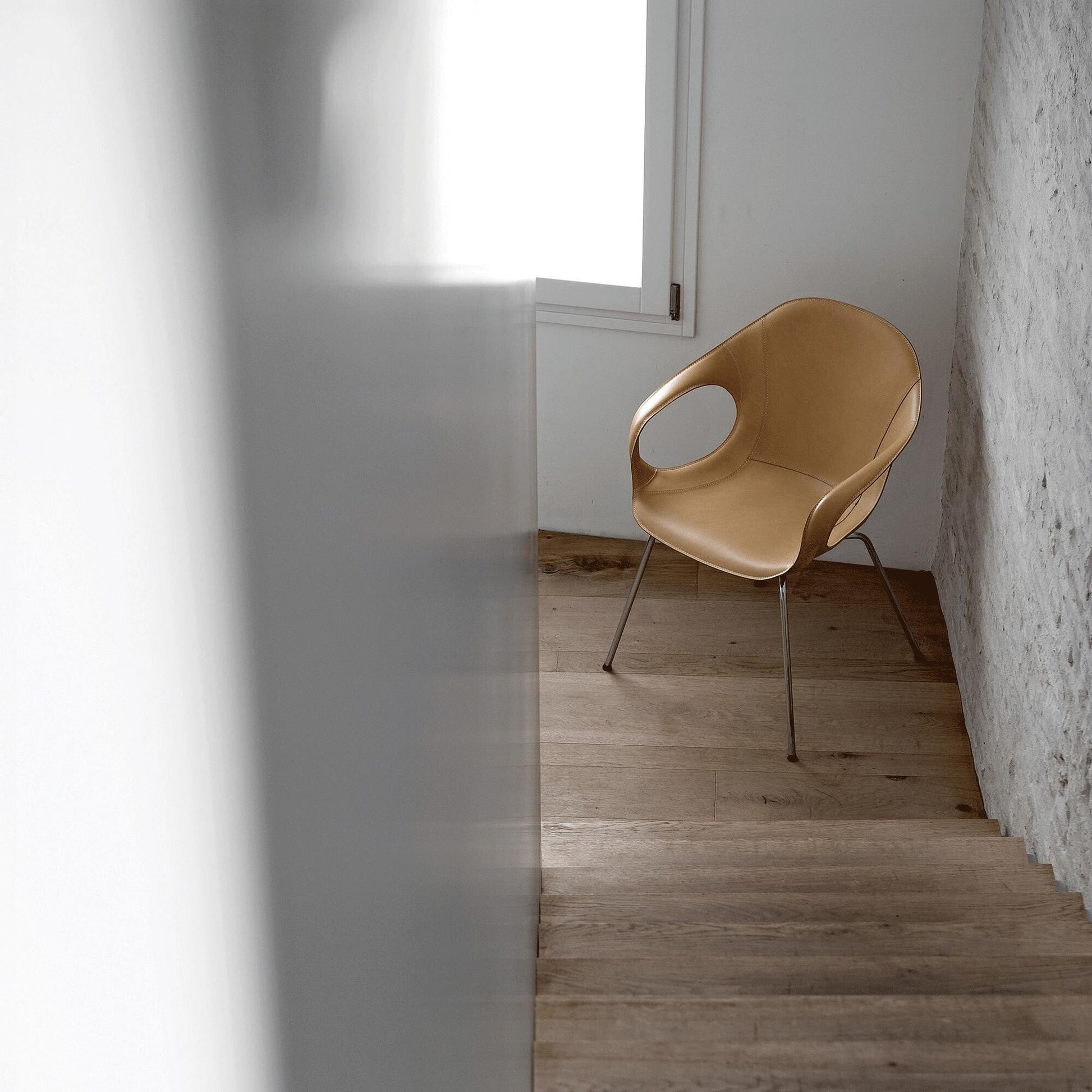 Diese Version des Elephant Chairs von Kristalia ist ein echter Glanzpunkt in jedem Raum. Sie ist erhältlich mit braunem Leder, kann jedoch auch in allen von Kristalia angebotenen Farben bestellt werden. Der Elephant Chair, der von Neuland für Kristalia entworfen wurde, wurde mit dem Interior Innovation Award 2012 ausgezeichnet.