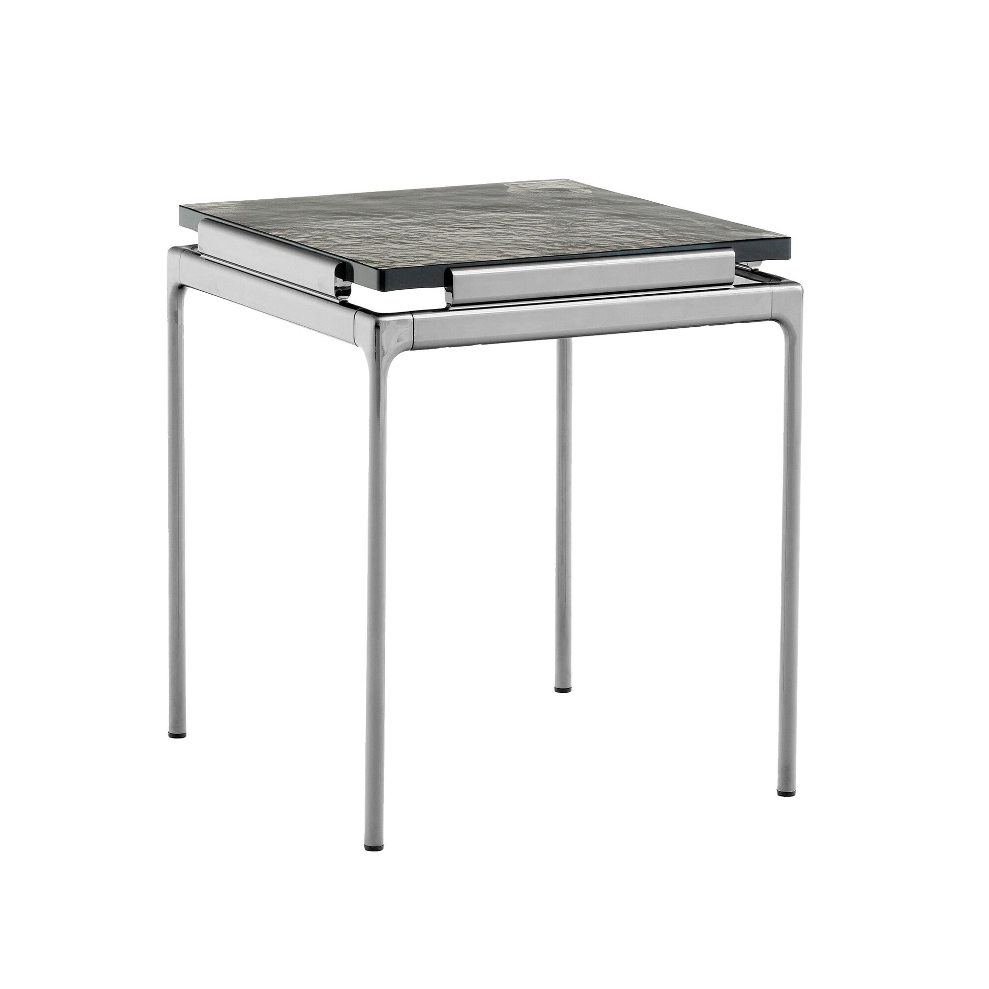 Der Sett LN11 Beistelltisch ist in verschiedenen Farben erhältlich und bietet zwei verschiedene Ausführungen: eine mit einer glatten, gezeichneten Steinmaserung und eine mit einer unregelmäßigen Glasstruktur. Beide Ausführungen zeichnen sich durch ihren einzigartigen Charakter aus.