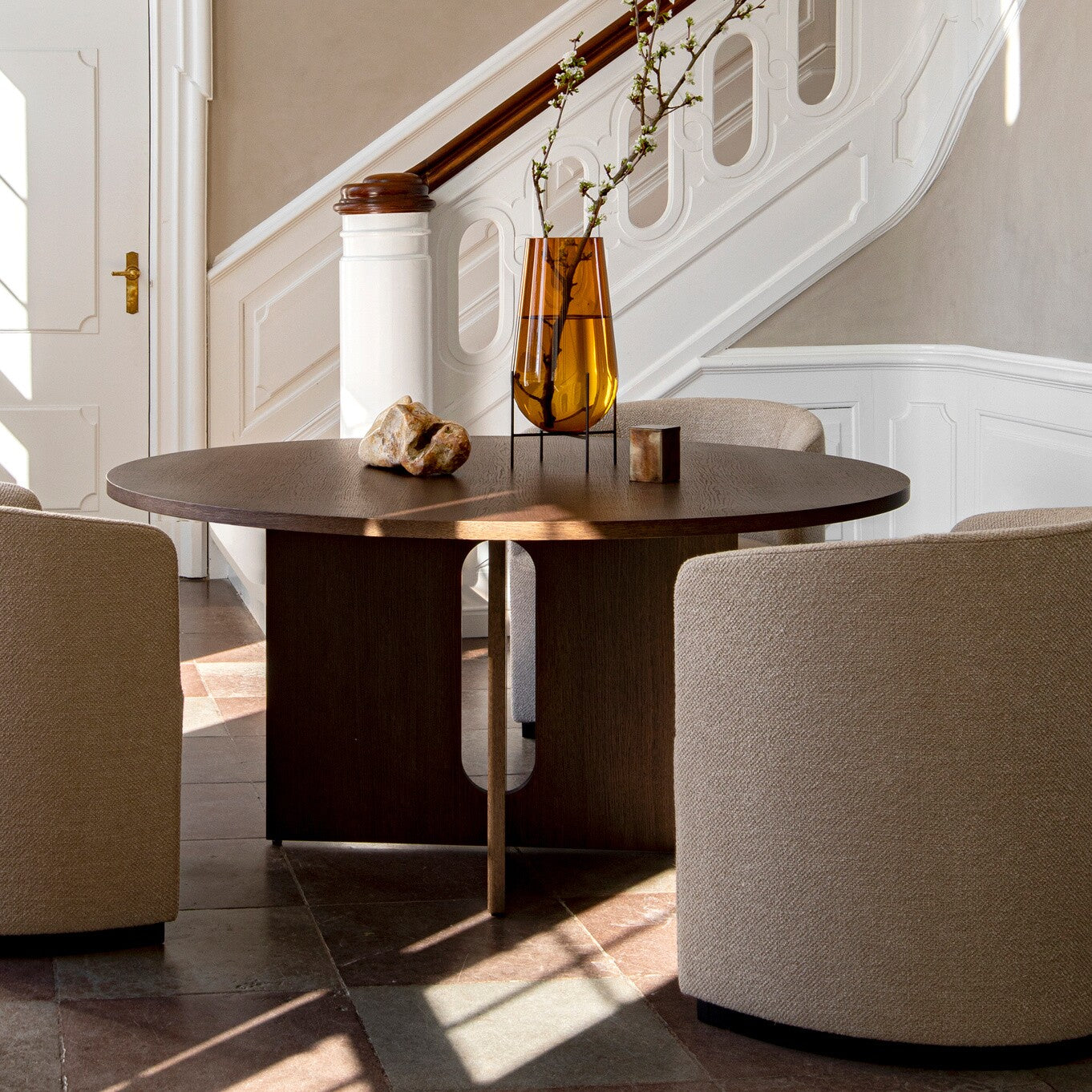 Der Androgyne Esstisch Ø 150cm von Audo ist ein Meisterwerk des Designs, das von Danielle Siggerud für die luxuriöse Marke Audo entworfen wurde. Sein einzigartiges Design erinnert an ein Monument, das jeden Raum zum Hingucker macht.