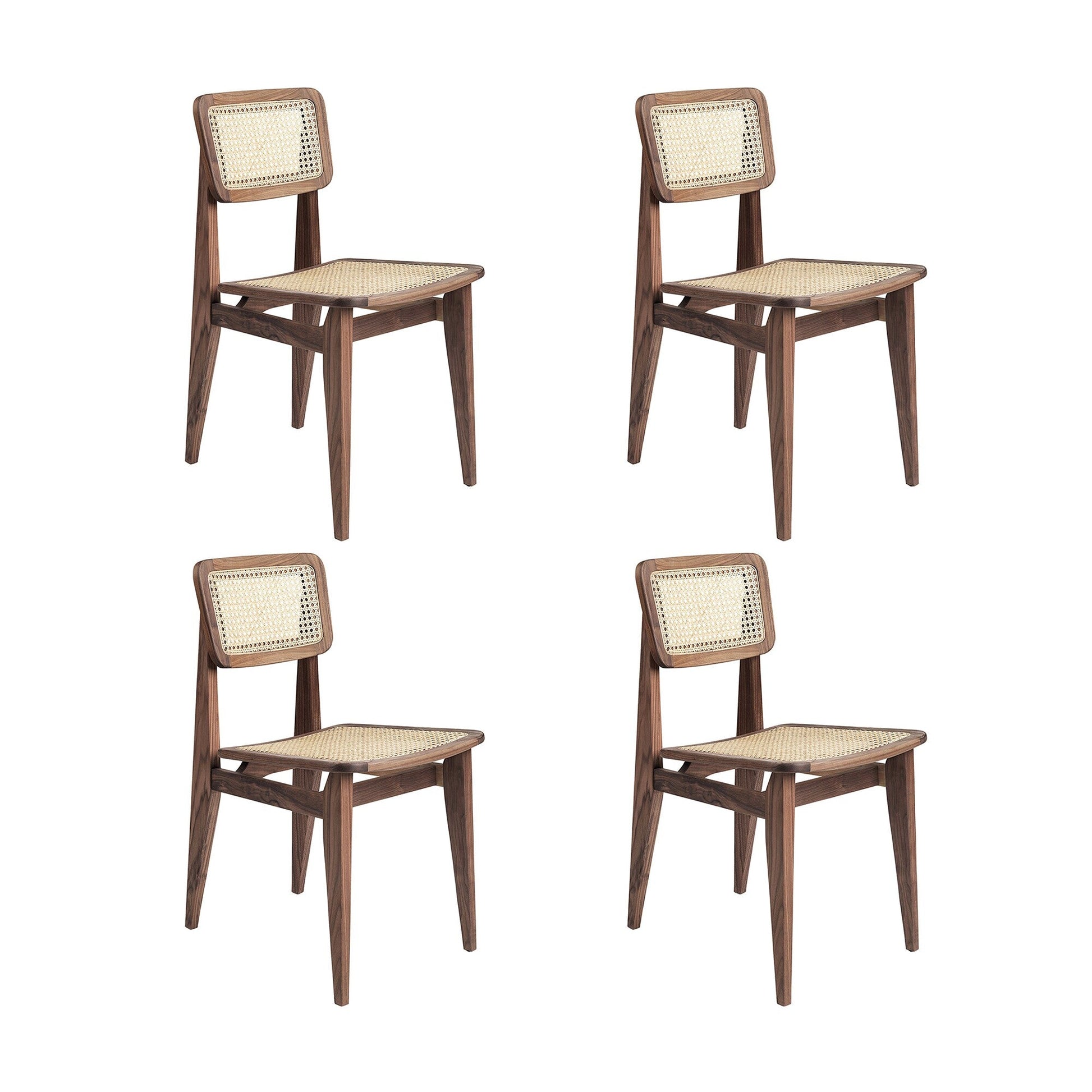 Das C-Chair All French Cane Stuhl 4er Set ist eine ikonische Stuhlkreation, die von Marcel Gascoin für die Marke Gubi entworfen wurde. Diese legendäre Entwürfe stammen aus den 1940er-Jahren und zeugen von der Meisterschaft des französischen Designers. Die kompakte Form der Stühle ist auf die Platznot nach dem Zweiten Weltkrieg zurückzuführen, während ihre formschönen Details eine besondere Attraktivität verleihen.