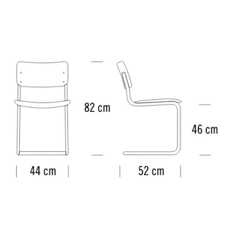Die markante Konstruktion des Thonet Stuhls ist ein echtes Highlight. Durch die federnden Kufen des Stahlgestells bietet der S 43 Freischwinger angenehmen Sitzkomfort. Der perfekte Ausgleich zwischen Form und Funktion macht den S 43 zu einem echten Designklassiker. Die verschiedenen Lackierungen des Stahlrohrgestells können Sie in unseren Produktvarianten entdecken.