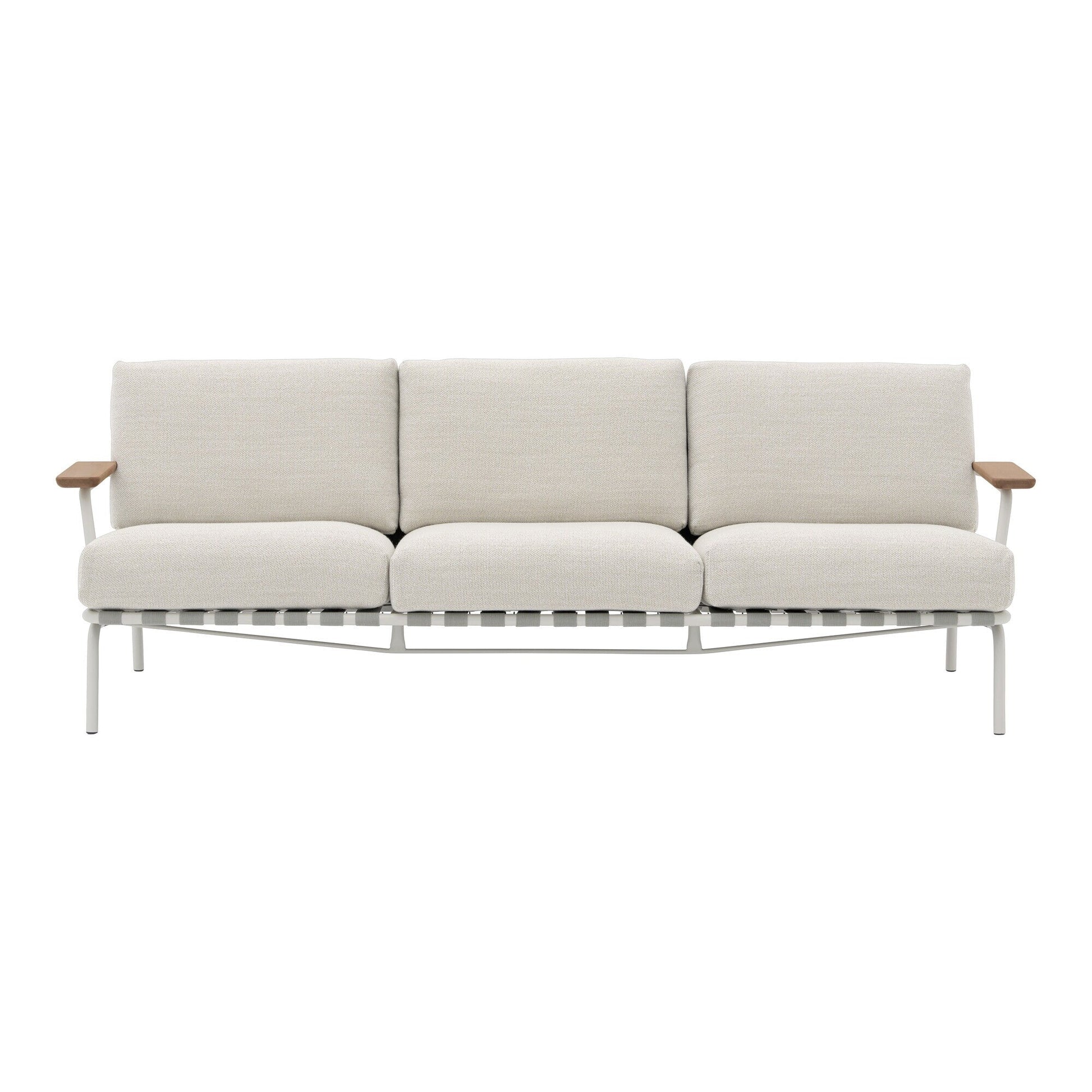Mit seiner luftigen Ästhetik und robusten Verarbeitung verbindet das Settle Outdoor 3-Sitzer Sofa Stil und Komfort für ein unvergleichliches Wohnzimmer-Erlebnis außerhalb. Der verzinkte, pulverbeschichtete Stahlrahmen bietet eine korrosionsbeständige Basis, während sichtbare Elemente des Gestells als stabile Ablage für die drei Sitz- und Rückenkissen fungieren. Die Auflagen sind schnell trocknend, rutschfest und mit strapazierfähigem Stoff bezogen.