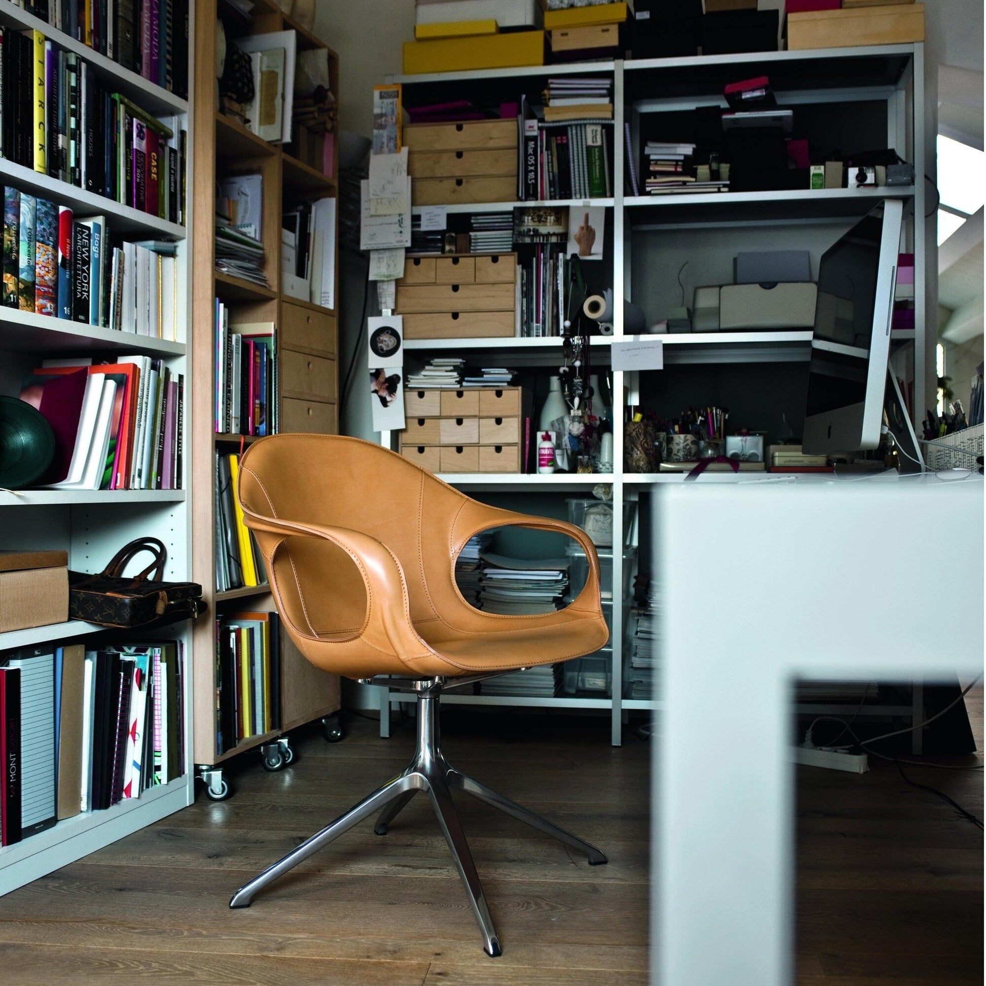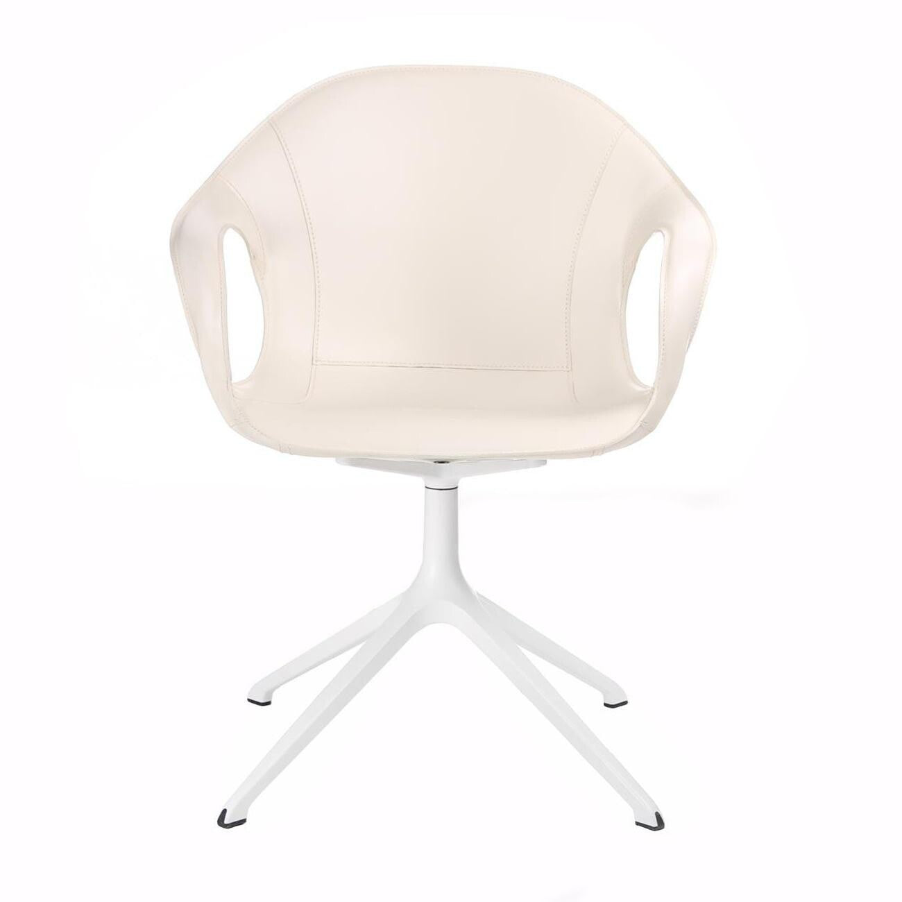 Ausführungen: Elephant Dreharmlehnstuhl Kreuzfuß Leder / creme C1/Gestell weiß lackiert