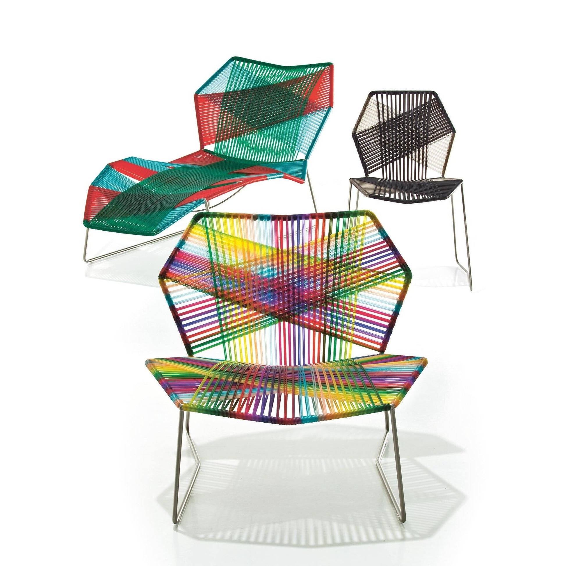 Die inspirierenden Muster, die Patricia Urquiola für den Tropicalia Stuhl verwendet hat, sind einzigartig und faszinierend. Sie erinnern an die Stahlrohrstrukturen des Designprojekts Antibodi, das die Essenz von Struktur und Spannung in sich trägt. Das Geflecht aus Kunststoffgarn, das die Designerin in Handarbeit gefertigt hat, ähnelt miteinander verwebten Bleistiftlinien, die einzigartige Akzente setzen.