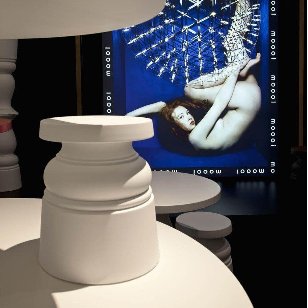 Der Container Stool New Antiques Hocker von Moooi ist ein Meisterwerk des Designers Marcel Wanders. Diese stilvolle Kollektion vereint das Flair antiker Möbel mit der zeitgenössischen Ästhetik von Moooi. Die Querrillen am Fuß des Containers erinnern an die Kannelierung griechischer und römischer Säulen, ein Detail, das jedoch durch die Verwendung von Polyethylen und nicht Marmor, eine innovative Note setzt.
