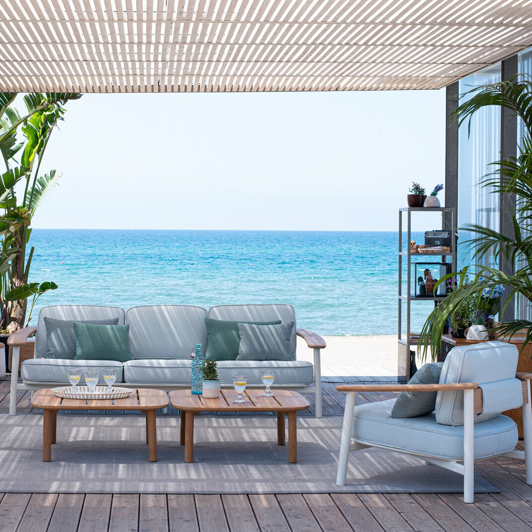 Der Twins Beistelltisch niedrig 85x85cm ist ein Meisterwerk von Sebastian Herkner für die renommierte Marke Emu. Perfekt geeignet für die Sofas aus derselben Kollektion, bietet dieser Tisch nicht nur Stil, sondern auch praktische Lösungen für Ihre Freizeit. Ob am Pool, auf dem Balkon oder der Terrasse, er hält Bücher, Getränke und Utensilien griffbereit. Ergänzt wird das Angebot durch Esstische in unterschiedlichen Größen.