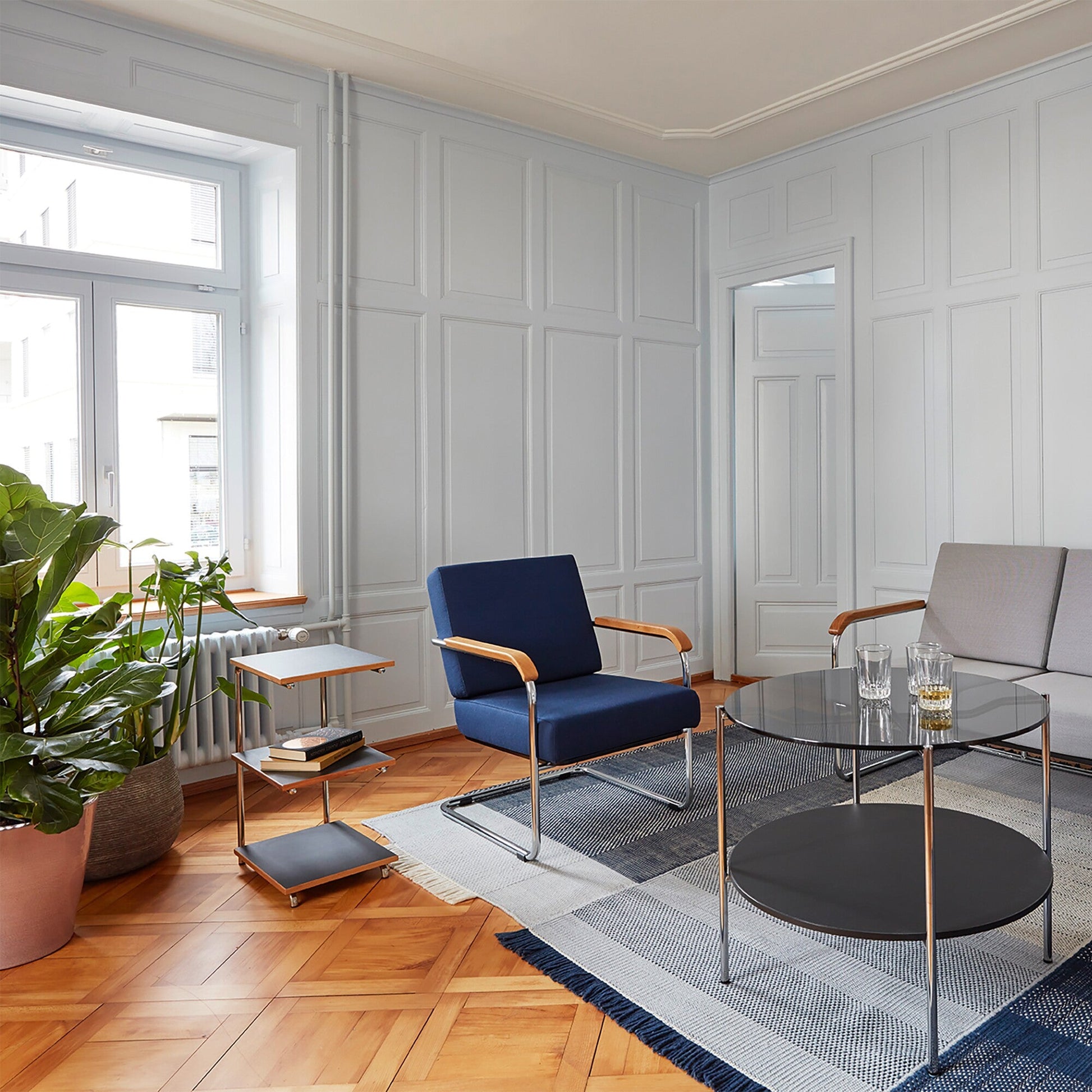 Der Moser Modell 120 Beistelltisch passt neben die Couch im Wohnzimmer, ins Arbeitszimmer und eignet sich auch für das Wartezimmer einer Praxis oder die Lounge eines Designhotels. Seine Maße betragen 61cm Höhe, 44cm Tiefe und 30cm Breite. Er ist in verschiedenen Ausführungen erhältlich und bietet eine Vielzahl von Möglichkeiten für individuelle Gestaltung. Passend dazu gibt es aus der Moser-Kollektion verschiedene Sitzmöbel, die perfekt zu diesem Ablagemöbel passen.