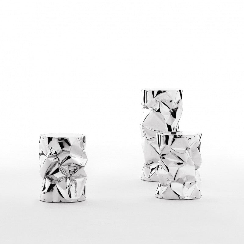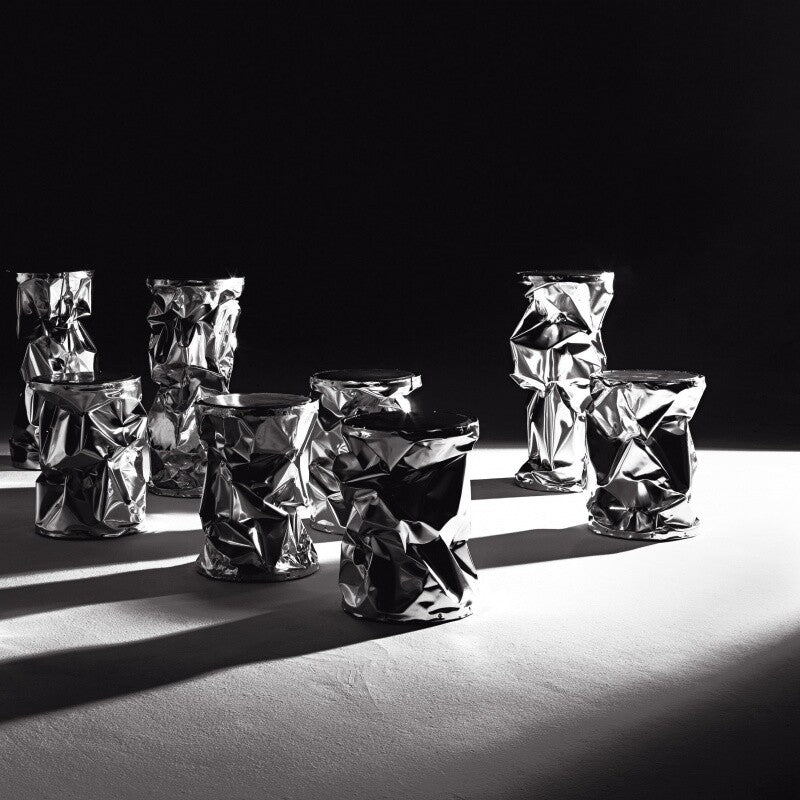 Der Tab.U Hocker ähnelt in seiner Form zerbeulten Dosen, ist jedoch im Inneren aus massivem Holz gefertigt und wird von Hand mit Aluminium überzogen. Dieses außergewöhnliche Design spielt mit unseren Sinnen und überzeugt durch seine Exklusivität und seine hohe Qualität.