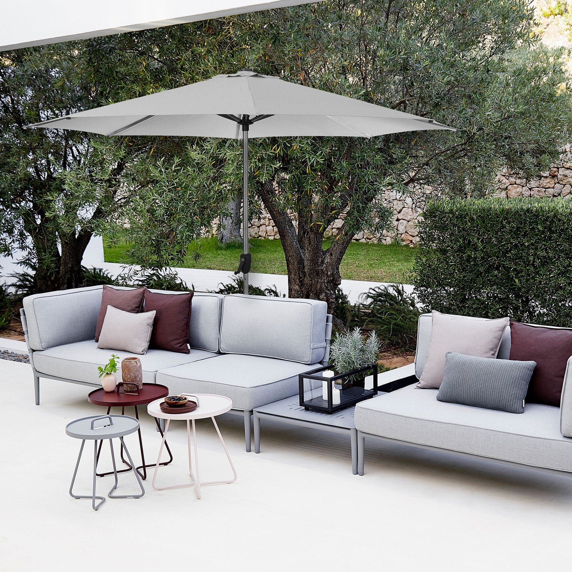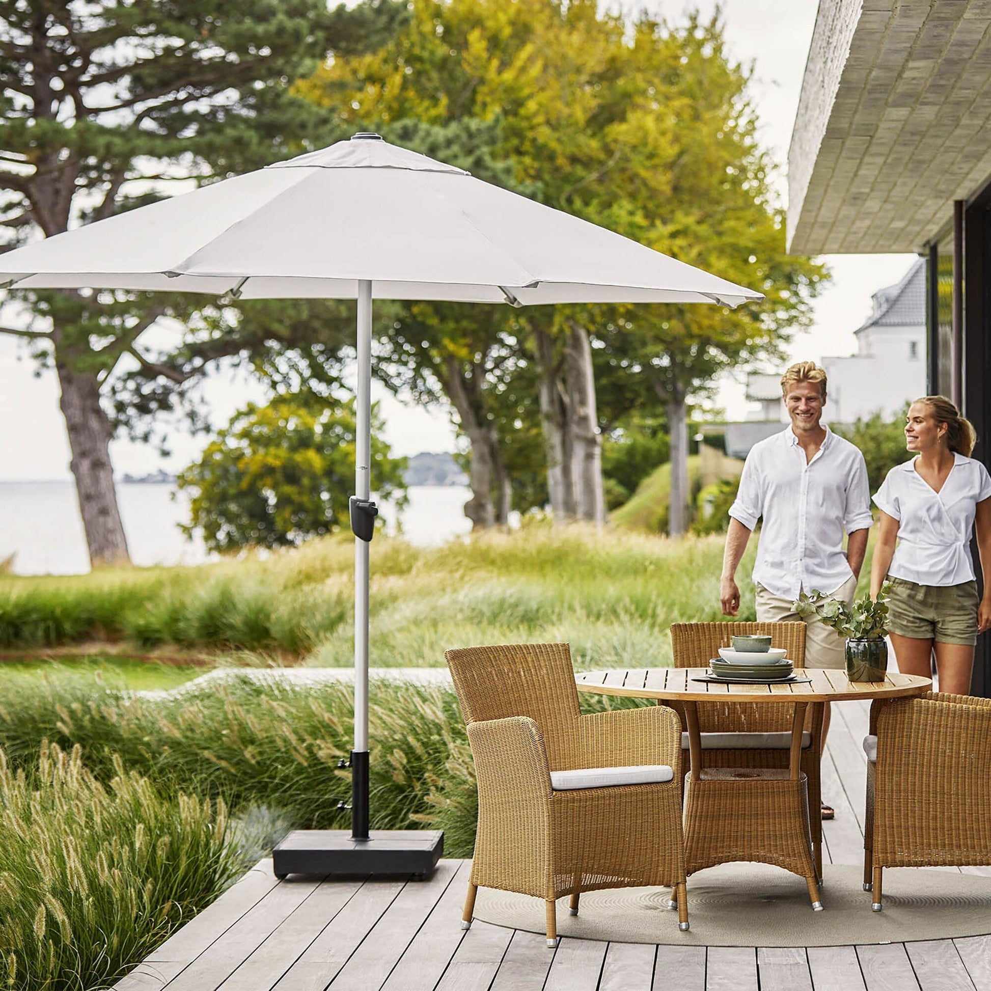 Der perfekte Schattenspender für Ihren Garten, Ihre Terrasse oder Ihren Balkon: der Sunshade Sonnenschirm von Cane-Line. Entworfen für diejenigen, die die Freiheit der Außenräume genießen möchten, ohne die Gefahr eines Sonnenbrands zu riskieren. Selbst bei starkem Sonnenlicht kann man sich im Schatten des Sunshade Sonnenschirms erholen.