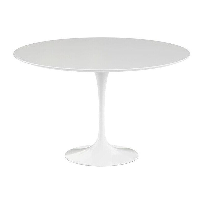 Der Hersteller verwendet für die Produktion hochwertige Materialien wie Kunststoff und Rilsan, die den Einsatz im Freien ermöglichen. Die Tischplatte hat einen Durchmesser von 1,2 Metern und befindet sich auf einer Höhe von 72 Zentimetern. Ein weiteres Mitglied der Saarinen-Serie ist der Outdoor-Tisch mit einer größeren, ovalen Platte, der problemlos mit dem kleinen Bruder kombiniert werden kann.