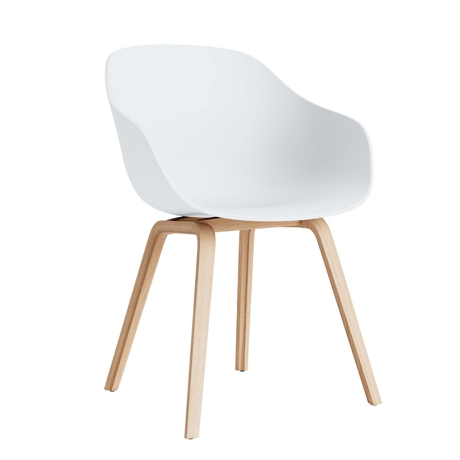 Ausführungen: About a Chair AAC 222 2.0 Armlehnstuhl Eiche geseift / weiß/Sitzschale Polypropylen recycelt/Gestell Eiche geseift/mit Filzgleitern