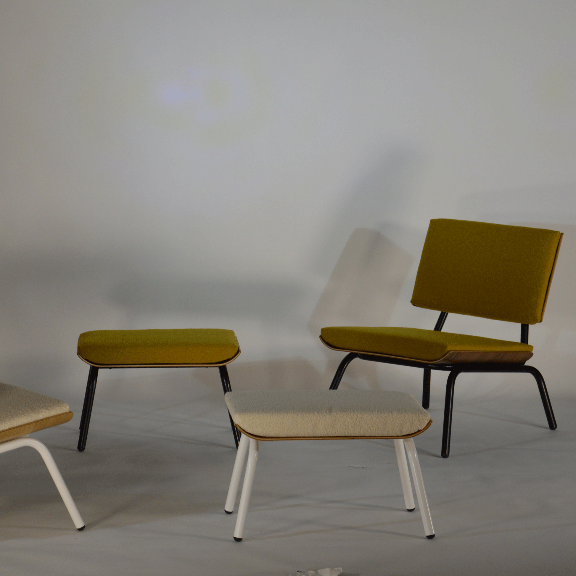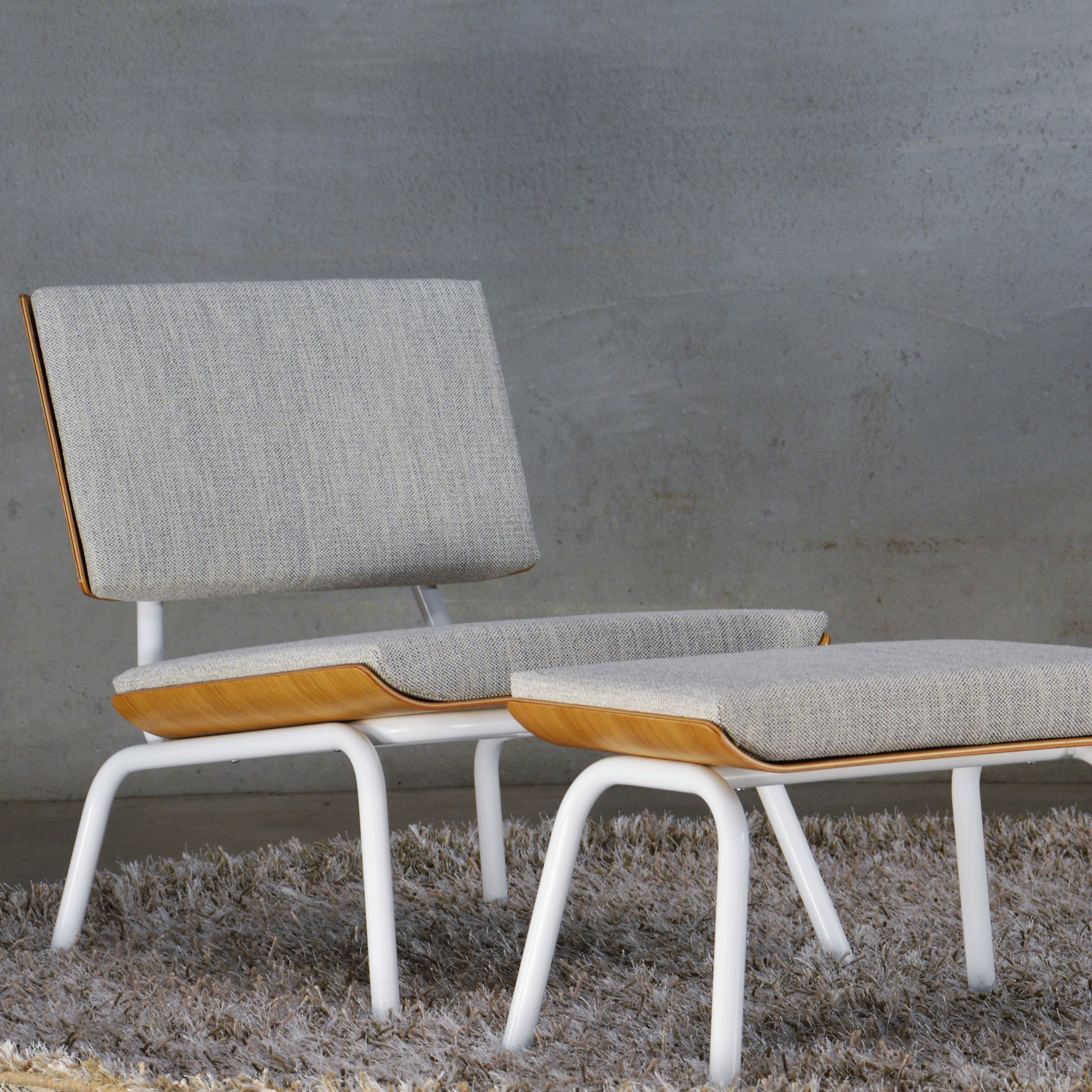 Der Olaf Hocker zeichnet sich durch eine robuste Stahlrohrkonstruktion aus, die von einer formschönen gebogenen Holzplatte getragen wird. Die Polsterung mit einem fein strukturierten Bouclé-Stoff sorgt für einen weichen Sitzkomfort, während der hochwertige Polyesterbezug eine gute Strapazierfähigkeit garantiert. Die Schichtholzplatte, die wahlweise mit einem fein gemaserten Eichen- oder Nussbaumfurnier beschichtet ist, bildet den Rahmen für das extravagante Aussehen des Designstücks.