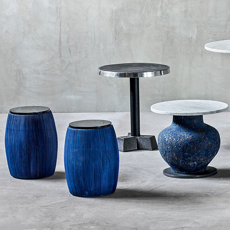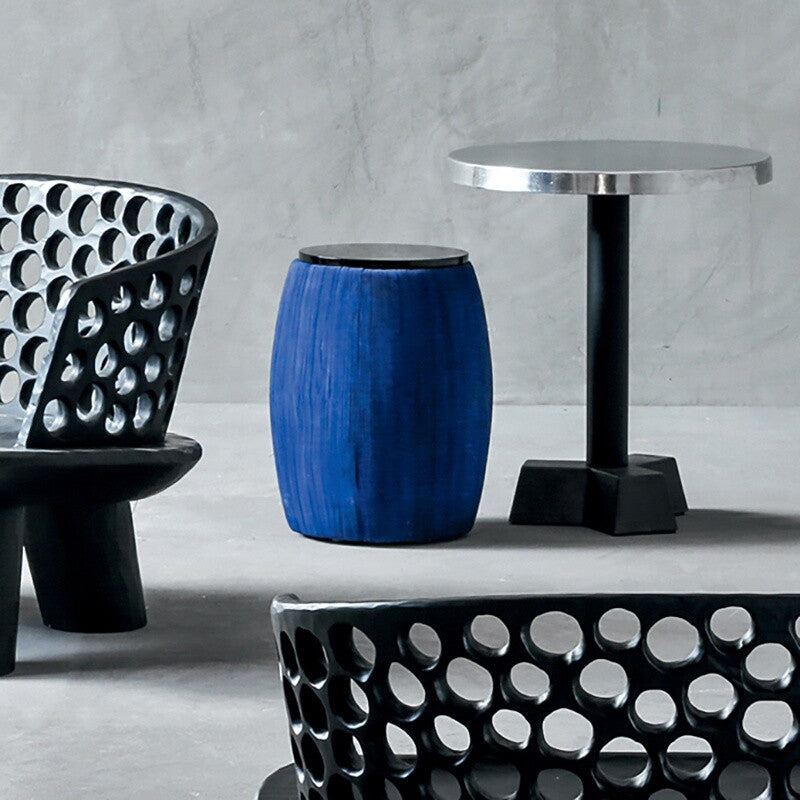 Ausführungen: News 108 Beistelltisch/ Ottomane / blau/lackiert/H x Ø 42x32cm/Platte aus MDF schwarz lackiert