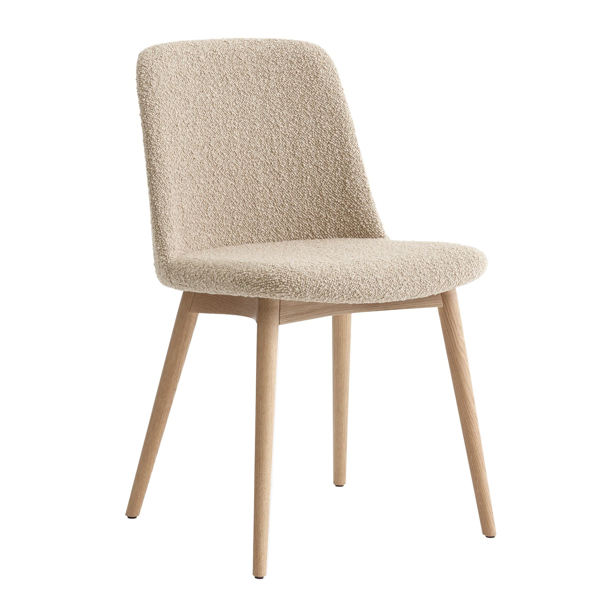 Die ausgestellten Beine des Stuhls sorgen für einen stabilen Stand und verleihen dem Rely HW73 Stuhl eine elegante Note. Das Gestell besteht aus hochwertigem Eichenholz, das eine zarte Maserung aufweist und dem Stuhl eine warme, natürliche Note verleiht.