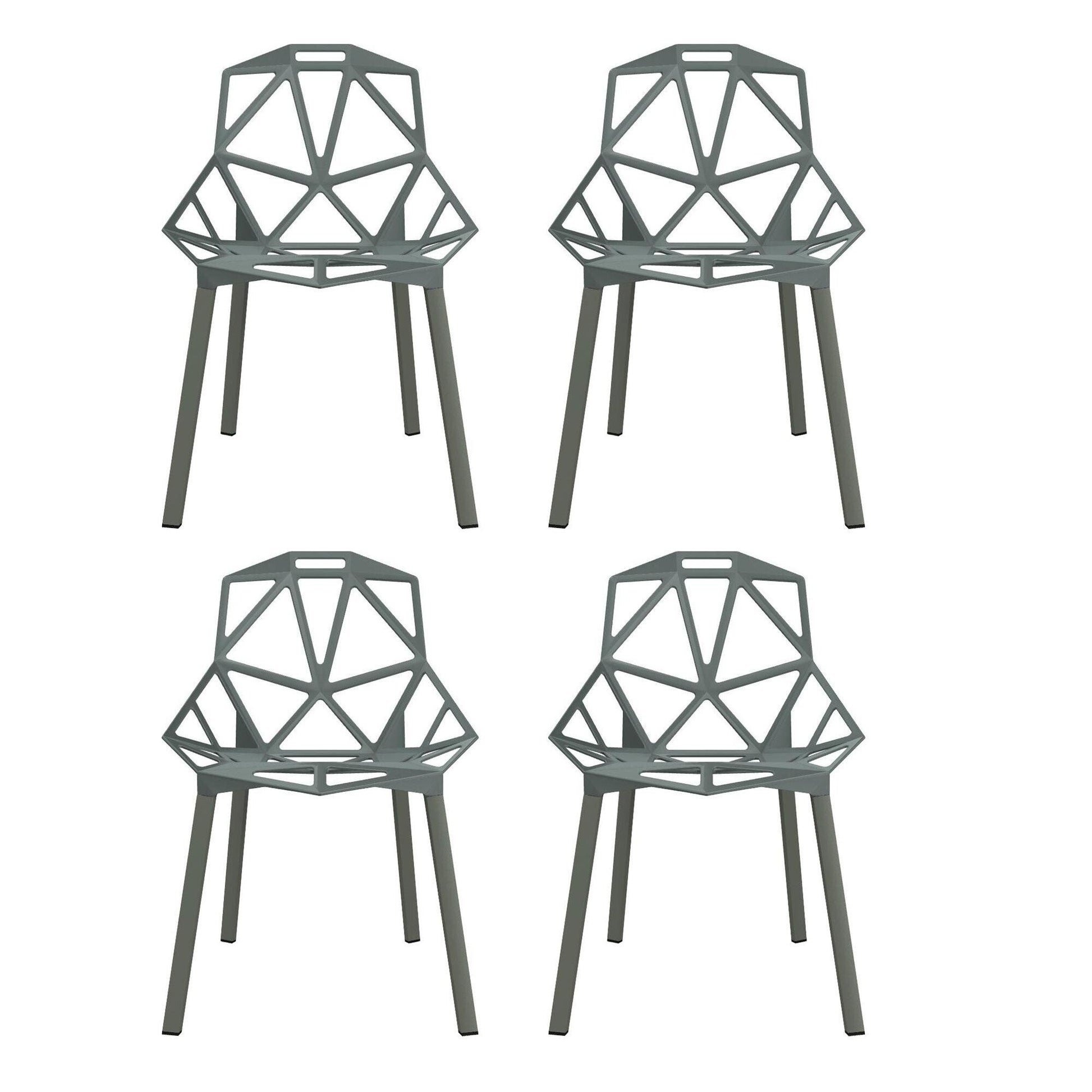 Ausführungen: Chair One Stuhl stapelbar 4er Set / grau-grün/Gestell Profilaluminium lackiert/BxHxT 55x82x59cm